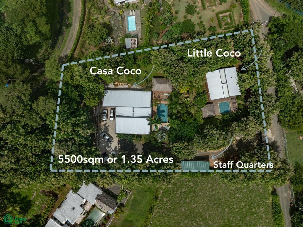 Welcome to Casa Coco, a rare opportunity offering two homes and two pools on a private 5,557 m² tropical estate in Río Santo, just 10 minutes from Tamarindo. Designed for comfort, privacy, and investment potential, this multi-family property blends indoor–outdoor living with lush gardens and secure surroundings.