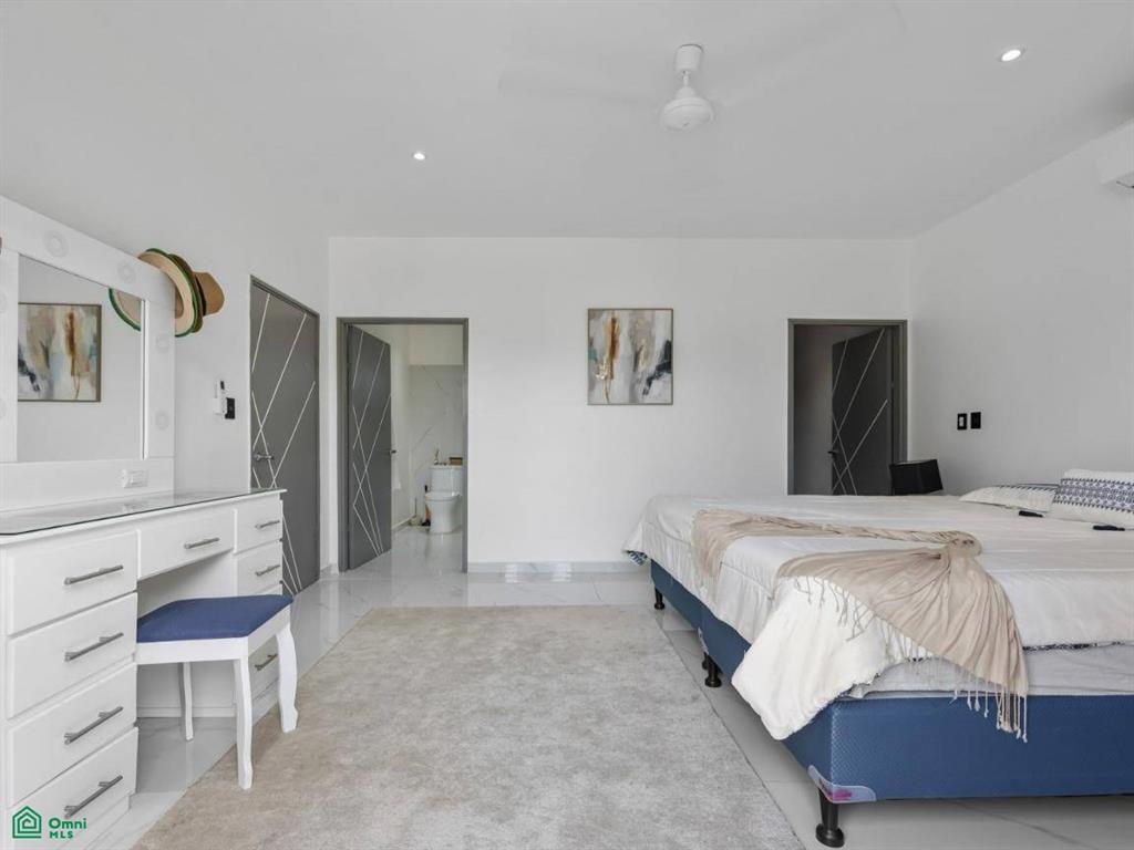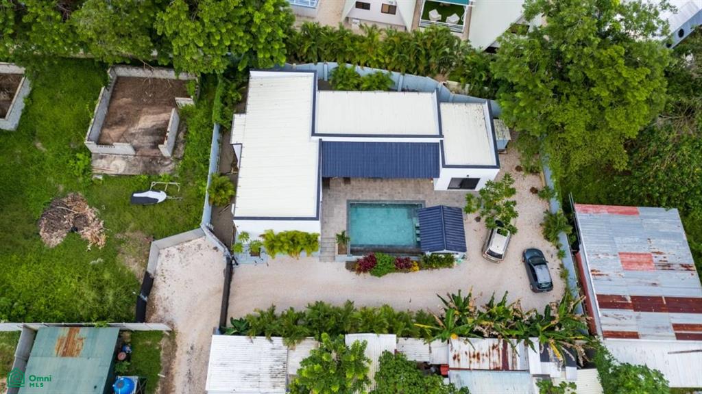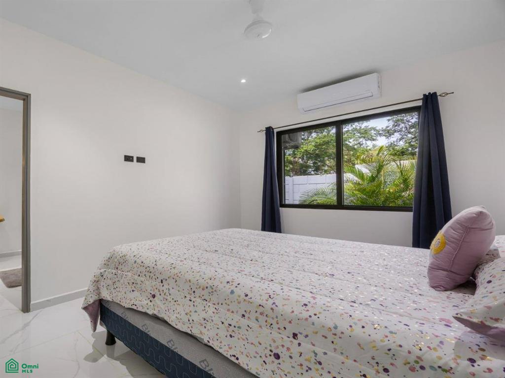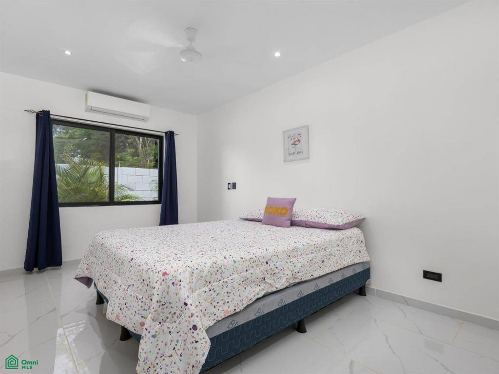 The 733m2 property is completely walled for security and privacy. The border of the property is lined with tropical plants making it feel like an oasis in your own yard. There is plenty of space for parking. Adjacent to the pool is a charming rancho area with an outdoor bar. This is ideal for entertaining, grilling, or enjoying cocktails after a day at the beach.