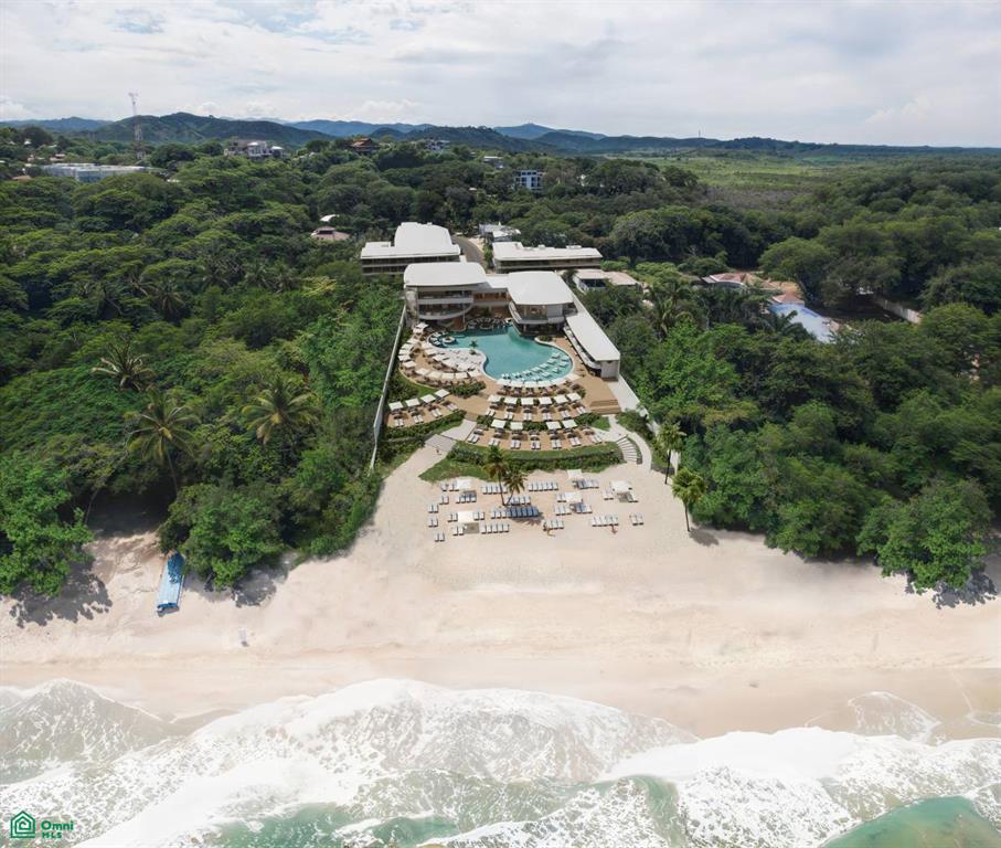 Amenities include beachfront dining, a gym, a spa, private cabanas, and the largest pool in Tamarindo.