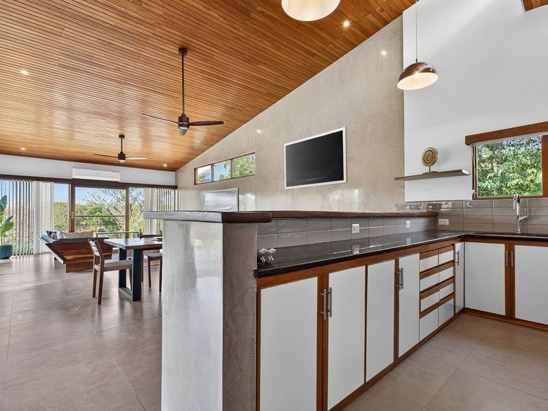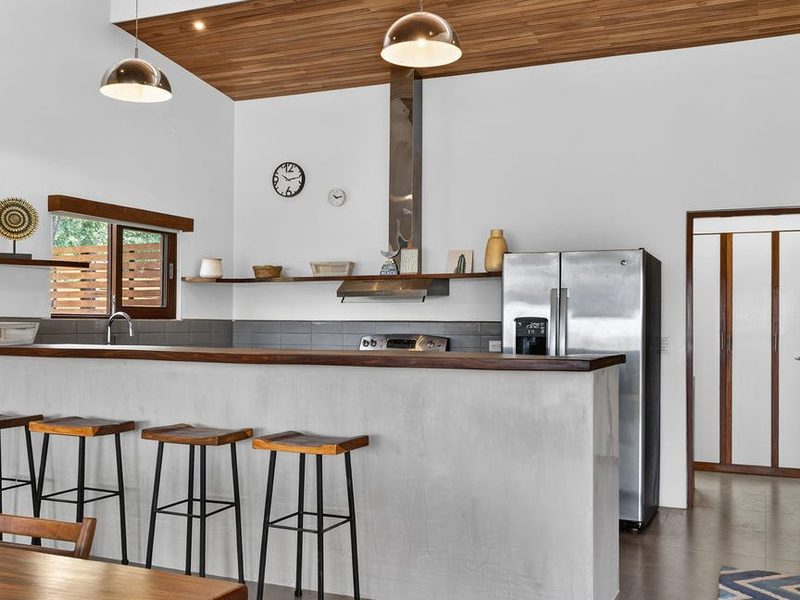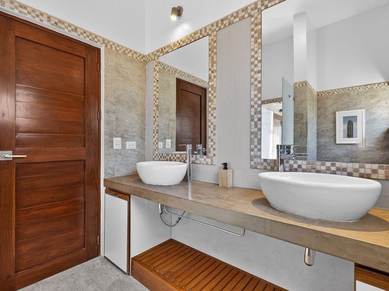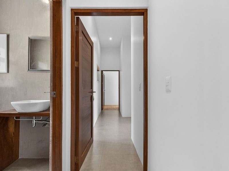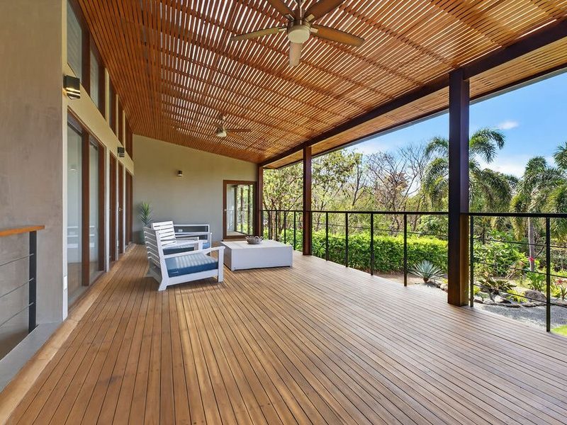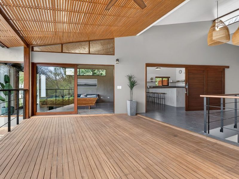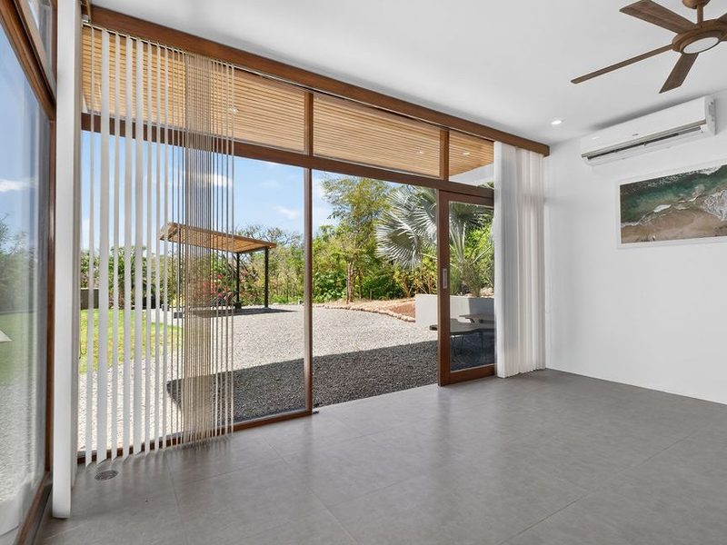 Built in 2020, this 4-bedroom, 3.5-bathroom home showcases contemporary architecture complemented by natural materials, including beautiful teak wood sourced directly from the property. Designed for seamless indoor-outdoor living, the home features large sliding glass doors that open to a spacious terrace, infinity-edge pool, and lush tropical gardens—creating a perfect setting for entertaining or relaxing in total privacy.