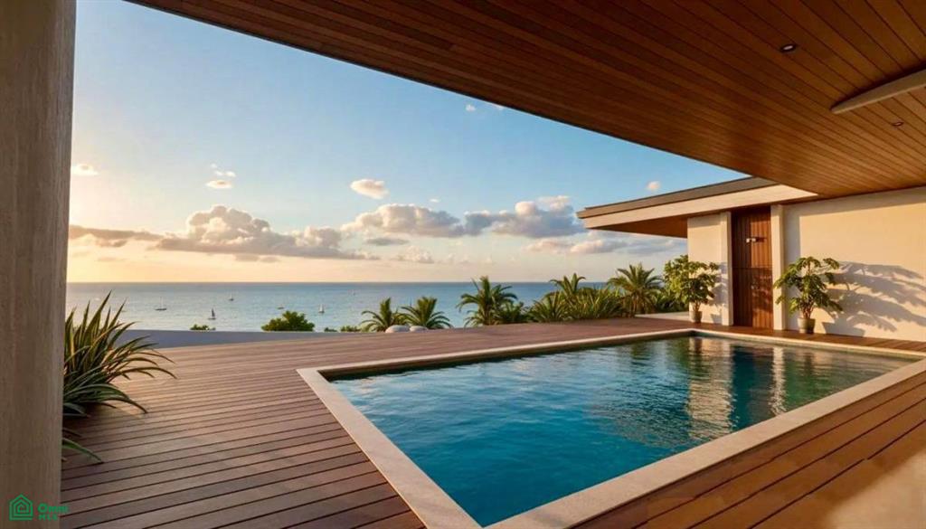 Designed for those who love to entertain and unwind, the home’s outdoor areas are a true centerpiece. A spacious covered terrace flows out to a stunning pool that visually merges with the horizon, creating an infinity effect over the ocean. This is where you’ll spend lazy afternoons in the sun, sunset cocktail hours, and memorable evenings hosting family and friends—all framed by sweeping coastal views.