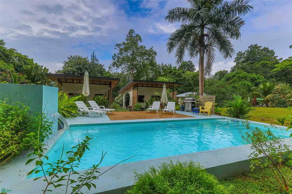 Set on two large, separately titled lots, this property is a gardener's dream with mature fruit trees (including lime, papaya, mango, guava, star fruit, orange, and coconut), a serene stream, and meticulously landscaped grounds, all fully fenced for privacy and safety of the family pet. The expansive covered patio is an ideal space for outdoor living and entertaining, complemented by a large pool just steps from the main house. Sit back, relax, and enjoy watching the hummingbirds, scarlet macaws, toucans, and a wealth of other wildlife as they visit your private oasis. The pool is large enough for swimming, and a spacious pool deck with umbrellas and chaises is the perfect place to unwind after a refreshing swim. At night, the beautifully illuminated grounds invite you to enjoy the magical evening sounds of the jungle a rare opportunity in an area renowned for premium opportunities within Dominical real estate and attractive long-term value for those exploring costa rica luxury investment.