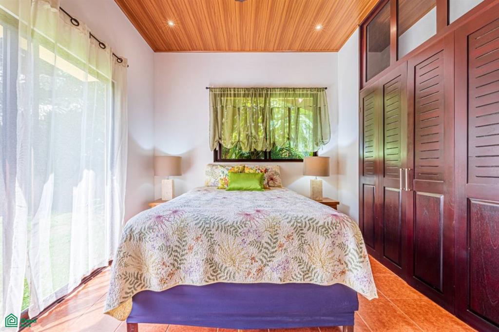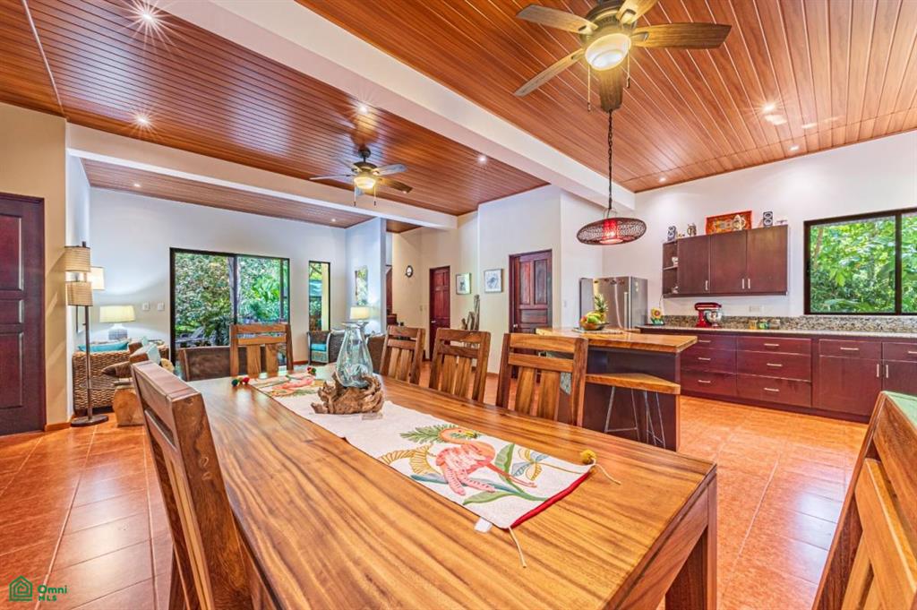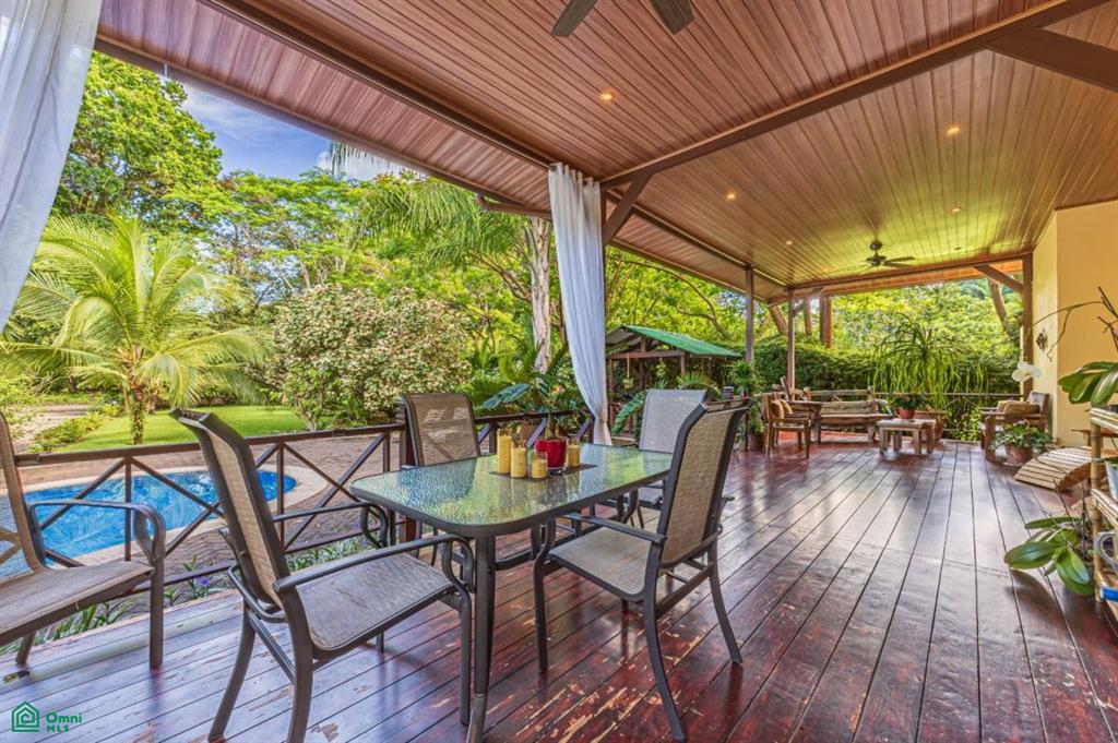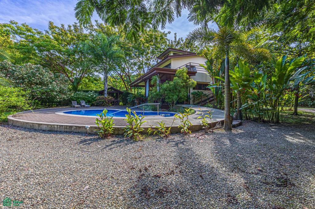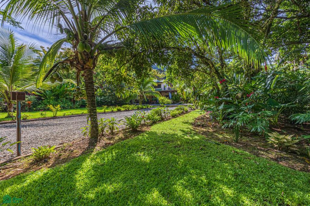 This property highlights a beautifully landscaped, fully functional home situated near Dominical, Costa Rica. The features include extensive outdoor amenities such as underground sprinklers, a water feature pond, diverse trees and indigenous flowering plants. It offers secure, gated access with electronic controls and covered parking with wheelchair access to the house and the pool.