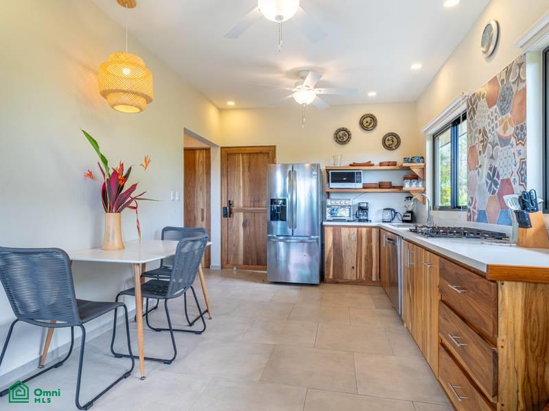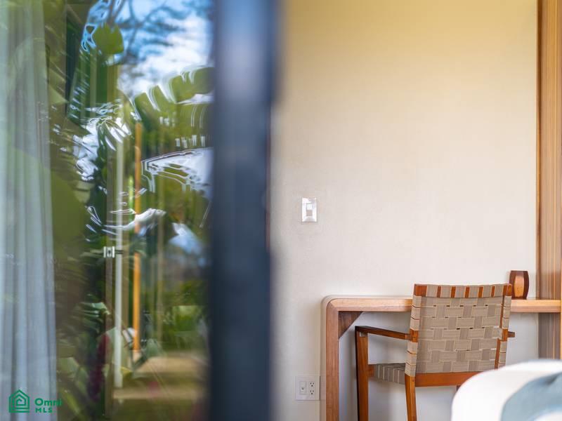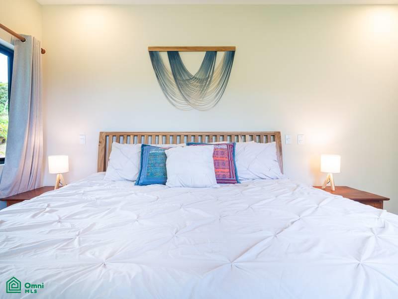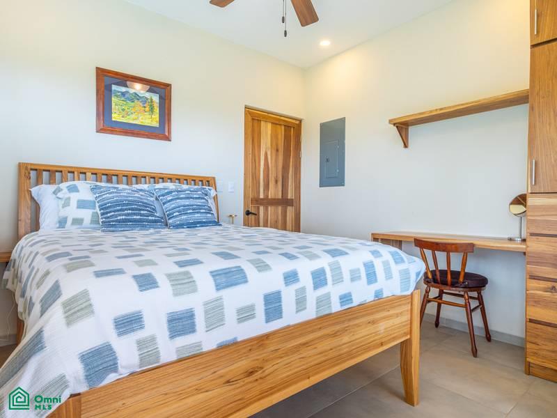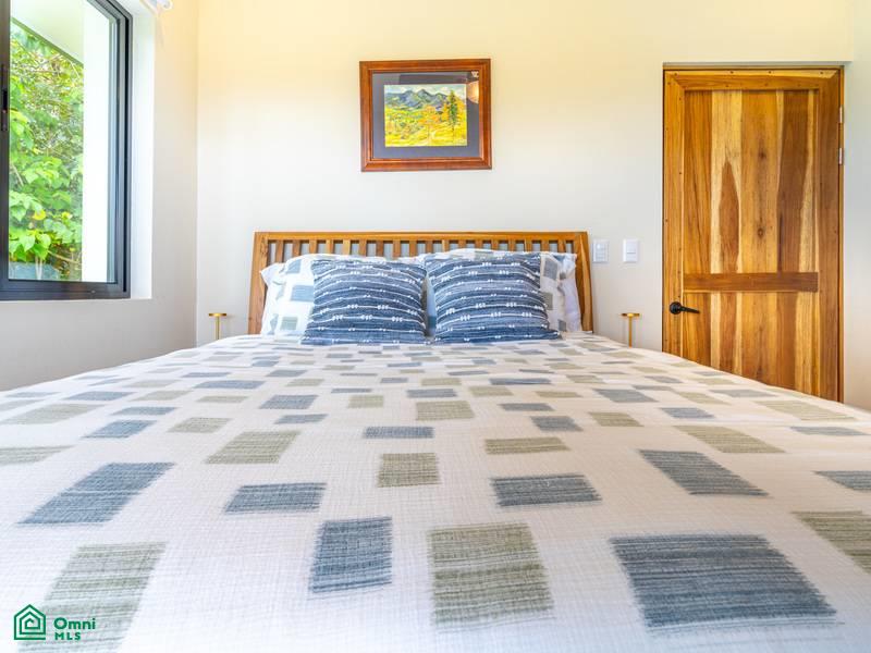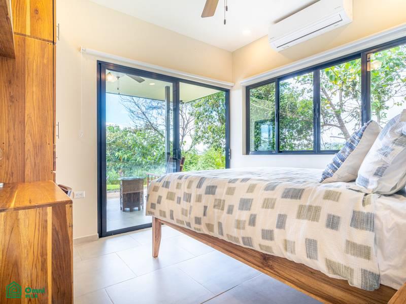 The main house boasts a master bedroom that overlooks the ocean and mountains. It features a king-size bed, closets, and a private terrace, with an adorned bathtub. The en suite bathroom offers an ocean-view shower, vanity, and WC. Additionally, two bedrooms in the house provide accommodation. One of these bedrooms offers mountain views while the other grants access to a pool terrace. To ensure your comfort all bedrooms and common areas in the house are equipped with air conditioning and ceiling fans.