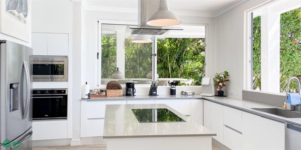 The villa has been recently remodeled, offering five bedrooms and five bathrooms, four en suite, designed for privacy and comfort. Expansive windows and thoughtfully planned spaces maximize natural light and ocean breezes.