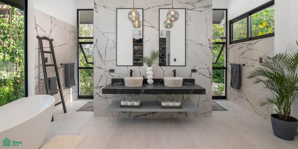 Set on an expansive 8,300-square-meter lot, this architectural masterpiece boasts 447 square meters of meticulously designed living space, crafted with the finest materials. The open-concept kitchen and spacious living areas feature premium finishes, creating a seamless flow between indoor and outdoor spaces. The residence offers four elegant bedrooms, including a private suite, and an ensuite master bathroom equipped with a double shower and a soaking tub. Additionally, a versatile TV room can be easily transformed into a fifth bedroom or home office. Step outside to a spectacular 15-meter-long saltwater infinity pool, where you can take in the unparalleled beauty of Playa Hermosa’s coastline.