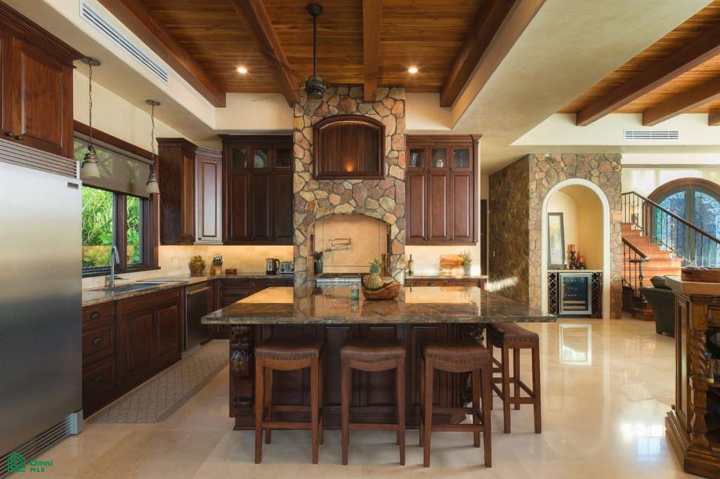 Step inside to discover a meticulously designed sanctuary where every detail enhances your living experience. Expansive living spaces bathe in natural light, creating an inviting atmosphere that effortlessly transitions from indoors to the breathtaking outdoor oasis. All wood ceilings, crafted from native Costa Rican trees, adorn the home, creating a vaulted and cathedral-like ambiance. Polished marble flooring spans the entire residence, while expansive LaCatina windows from floor to ceiling grace the entire ocean-facing side. These windows seamlessly slide back, providing the perfect option for a harmonious living to the sea.