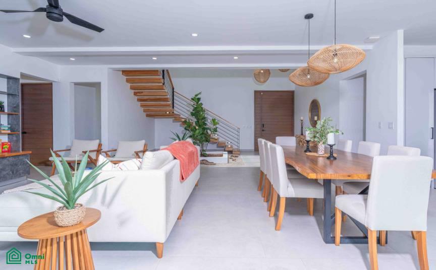 Showcasing minimalist, Zen-inspired architecture, Casa Canción Del Mar features custom Costa Rican furniture, including a stunning Guanacaste live-edge dining table, floating teak staircase, and custom-designed TV entertainment center. A living tree garden graces the entrance, seamlessly blending nature and luxury. Enjoy effortless entertaining with a fully stocked kitchen, USA linens, and a zero-scaped yard.