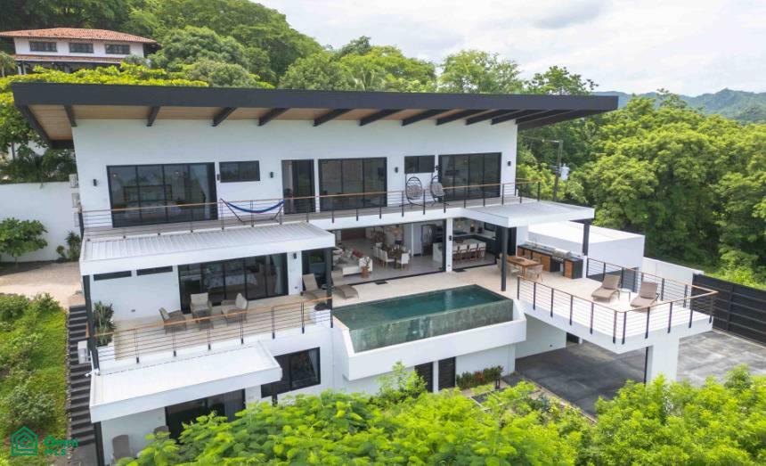 Welcome to Casa Canción Del Mar, a stunning ocean-view residence offering 160-degree panoramic vistas of Costa Rica’s breathtaking Pacific coastline. Perched above Potrero’s shoreline, this masterfully designed home encompasses 3,500 square feet of sophisticated indoor-outdoor living space, with 5 bedrooms, 4.5 bathrooms, a private office, and a fully self-contained 1-bedroom guest apartment—perfect for guests, caretakers, or generating rental income.