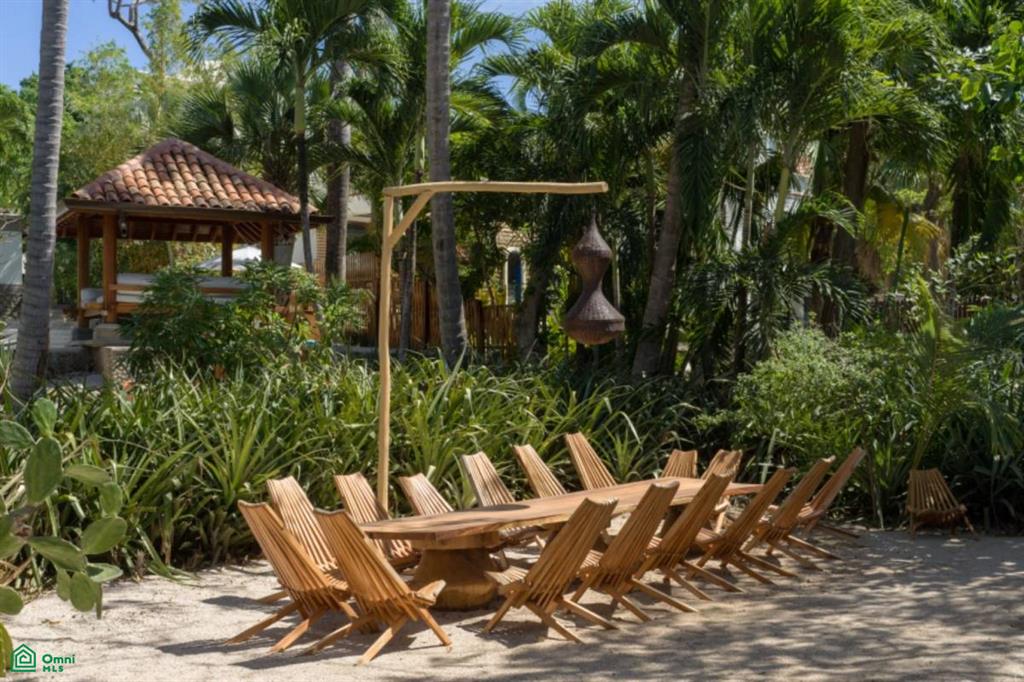 Situated on a double lot along the pristine white sands of Playa Langosta, Villa Serena is an architectural masterpiece. The main house features 3 bedrooms and 3 1/2 baths plus a private office off of the primary suite. The adjacent detached guest house features two bedrooms and two baths. The gourmet kitchen overlooks the living area and terrace beyond.