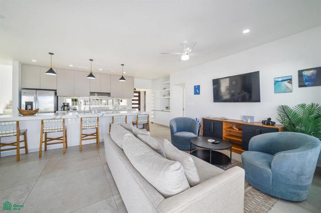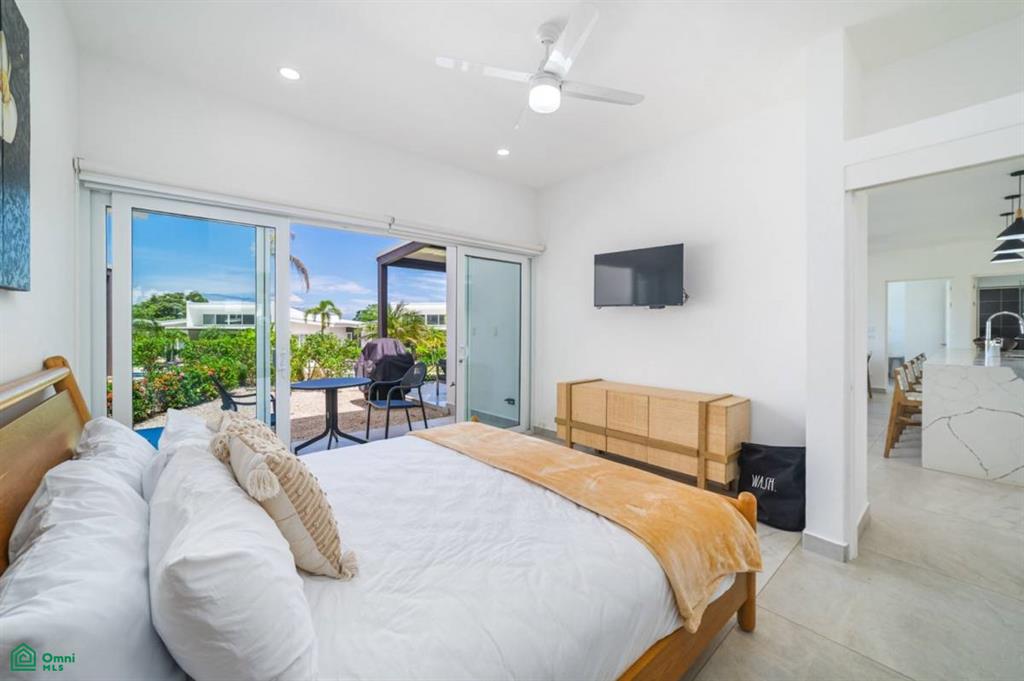 This villa spans on three levels, complete with a terrace on the roof, the perfect sitting for a hot tub beneath the stars. This stunning 5-bedroom, 4-bathroom home is crafted with high-end finishes, including waterfall quartz countertops and vaulted ceilings that fill the space with natural light. Step outside to the spacious patio and BBQ area, ideal for alfresco dining while you take in the scenic views of the sparkling pool below.