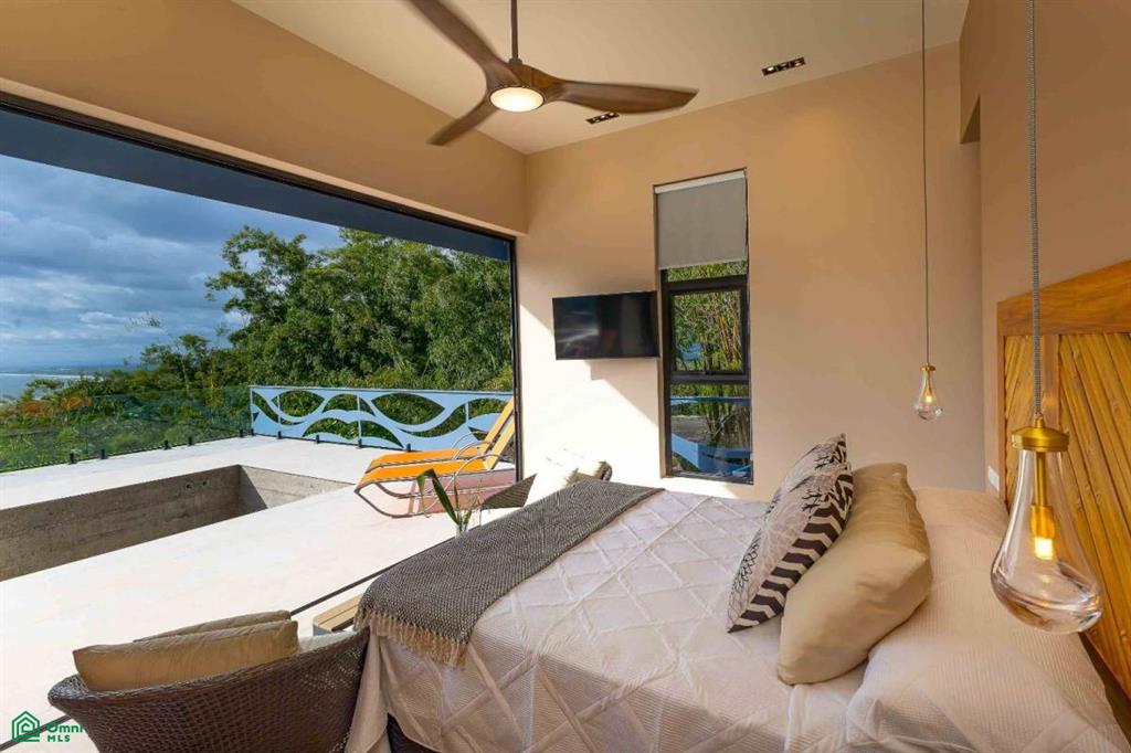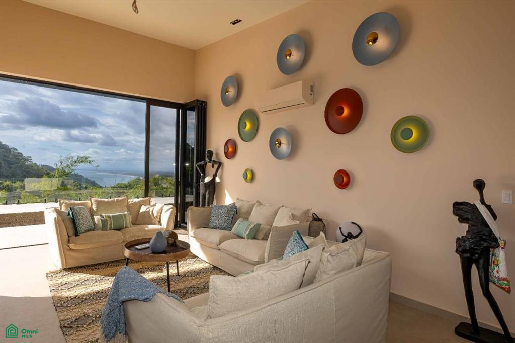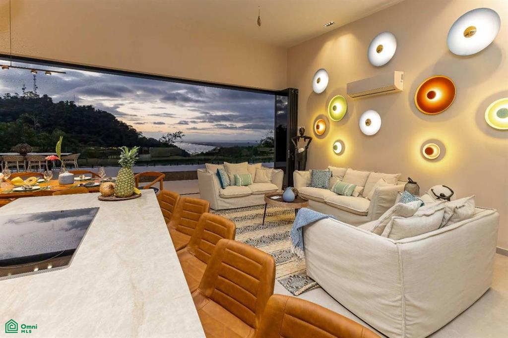 Step inside and be captivated by panoramic views of the Pacific Ocean, its coastal white water views stretching towards the horizon. On the opposite side, vibrant green mountains rise to meet the sky, painted with the golden hues of sunrise each morning. This is a place where nature's beauty takes center stage, making it one of the most sought-after Manuel Antonio luxury homes.