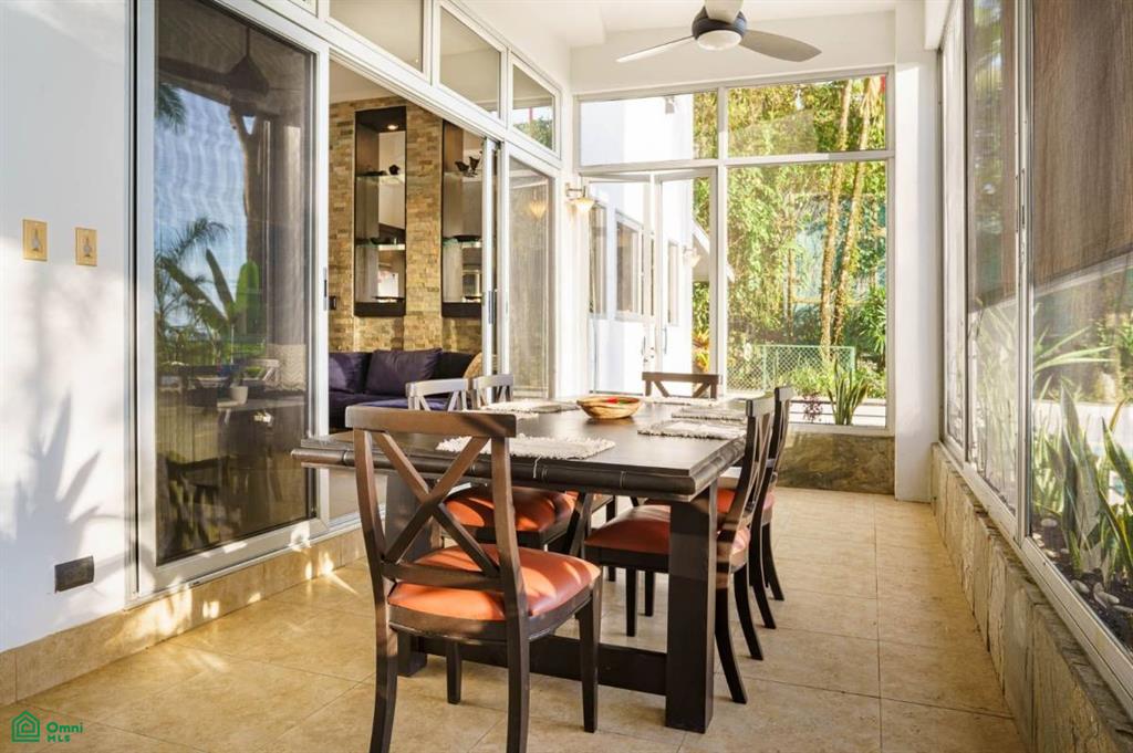 Private Sunroom adjacent to the pool area, perfect for dining or relaxing.