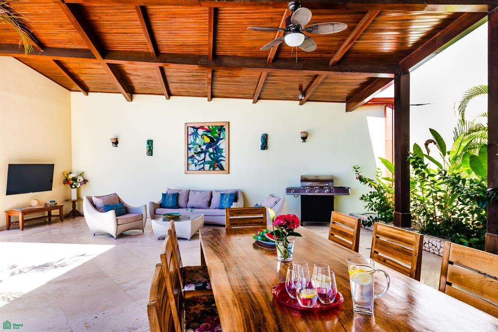The main house offers three bedrooms, including two recently added king-size bedrooms ideal for family living. Two additional two-story structures provide flexible accommodations, including a private guest suite and a rooftop-access building with panoramic views over Flamingo and the surrounding coastline. Local wildlife sightings further enhance the property’s connection to nature.