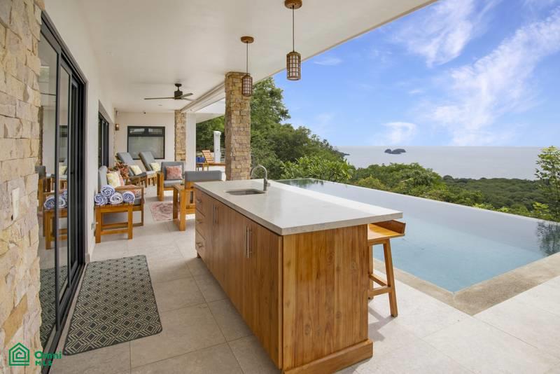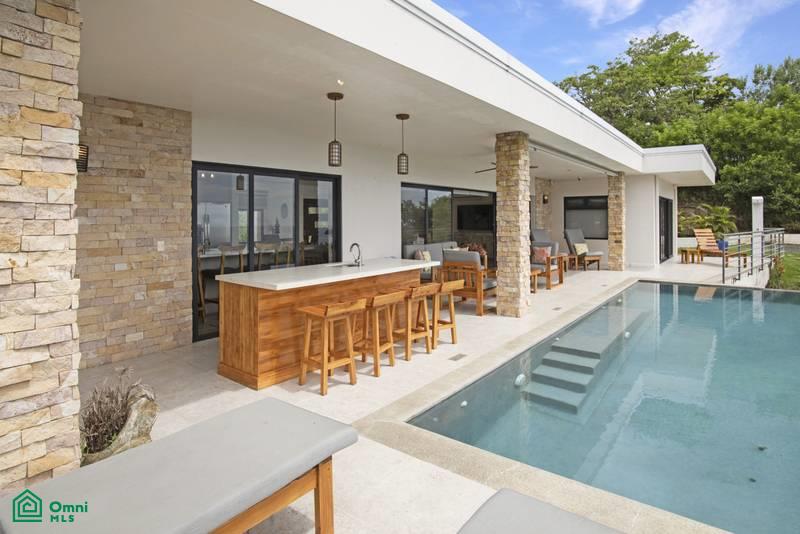 Casa NaToChi boasts four luxurious bedrooms: Two suites with king-size beds and two additional bedrooms, one with a queen-size bed and another with two full beds. The main suite offers complete privacy, an en-suite bathroom, a walk-in closet, and direct access to the infinity pool terrace, with a stunning ocean view. The bathroom features a double vanity, walk-in shower, and a beautiful Jacuzzi tub for two. The second suite also has a king-size bed, en-suite bathroom, ocean views, and terrace access. The other two bedrooms overlook a beautifully lit garden. The room with full beds includes an en-suite bathroom, while the queen bedroom has a private full bathroom. Imagine waking up to the soothing sounds of the jungle. Casa NaToChi is the epitome of luxury in Hermosa Beach, blending modern architecture with chic warmth. Adjacent to the main house are two full apartments. The lower apartment is a one-bedroom, one-bathroom partial ocean view unit , and the upper is a two-bedroom, two-bathroom great ocean view unit. Both are fully furnished with equipped kitchens. Large enclosed garage and two laundry facilities available. The prime location and exclusive services offer a perfect escape to reconnect with nature and enjoy Costa Rica's finest. Just 25 minutes from Liberia's Daniel Oduber Int. Airport and five minutes from local conveniences, including grocery stores, diverse bars/restaurants, boutique and even a theater. Hermosa Beach, renowned for its crystal-clear waters and breathtaking scenery, is a Blue Flag award winner for its environmental standards and safety. Casa NaToChi , situated in a gated community with 24-hour security, a tennis court, and high-speed Wi-Fi, ensures an unforgettable experience. Also located only 10 minutes from Playas del Coco for more services, fun and nightlife