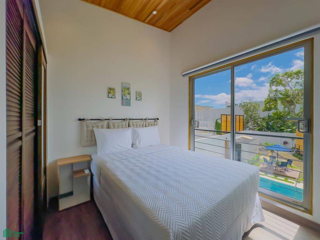 • Queen bed, kitchen, bathroom, AC, WiFi, and pool views