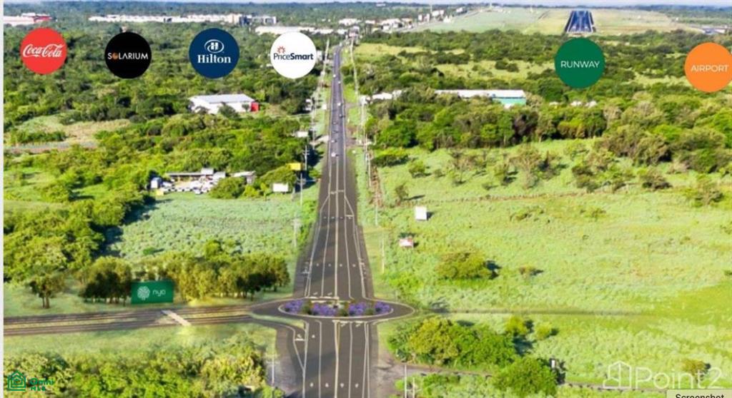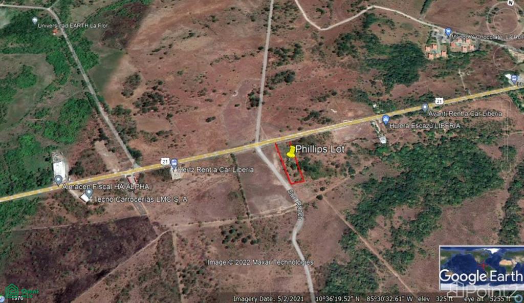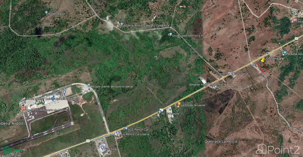 This 5-acre lot is ideally located only 2 kilometers from the Guanacaste International Airport at the entrance to the NYA development. The location could not be any better, directly on Highway 21 with all the traffic that comes from Liberia to Costa Rica’s Pacific Northwest beach destinations in the Papagayo Region. This high traffic location lends itself to a commercial venture or a storage facility for NYA suppliers. This lot could also accommodate employee quarters for the massive number of people that will be employed by NYA. The property also has teak trees on site.