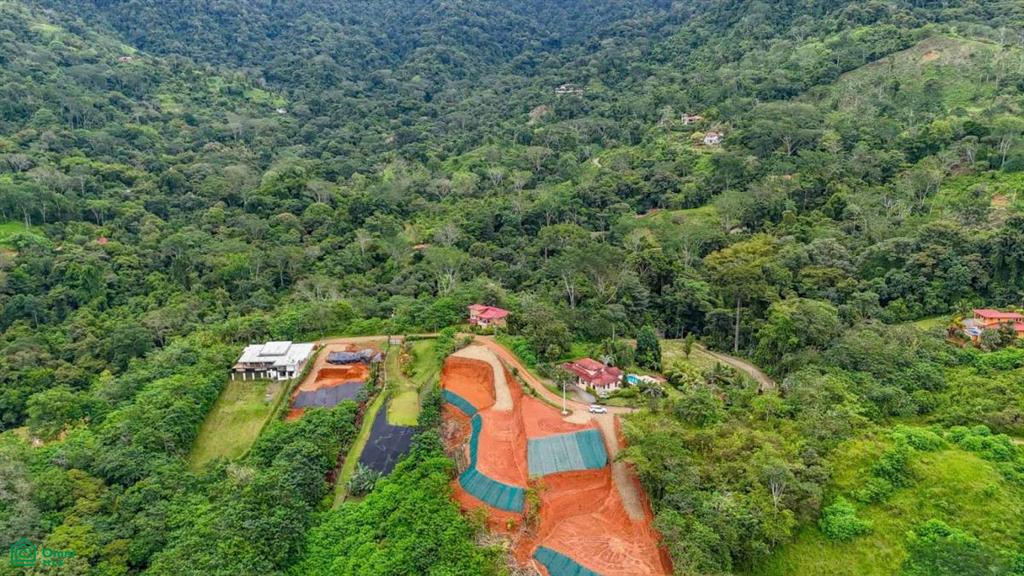 The lot straddles a dramatic ridge that juts away from a well-maintained public road, creating the sensation of floating above the jungle canopy. To either side, lush valleys and forested hills descend toward the Pacific, framing panoramic views of Caño Island, vibrant sunsets, and the shimmering coastline. Behind the property, the Talamanca Mountains rise over 1,000 meters (3,300 feet), cloaked in ancient jungles and cloud forest. Seasonal waterfalls cascade down their steep cliffs, adding to the visual drama.