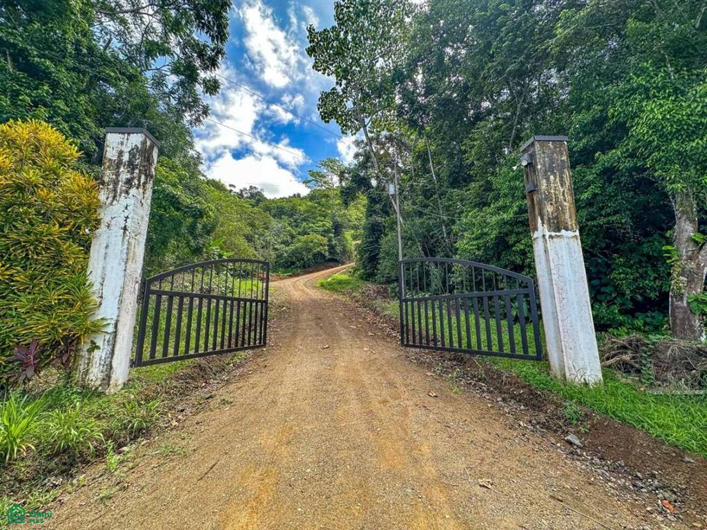 Straddling a rising jungle-covered hillside, this property borders the Costanera highway at its lower reaches, holding a very respectable 80m of highway frontage. The land then rises along jungle-covered ridges and valleys, terminating at the flat upper plantel which hovers about 150 meters above the highway and surrounding plains. This plantel is reached via an access-controlled & well-prepared internal road that serves this property as well as the exclusive gated community. The internal road starts at the Costanera, near the property line, passes the secure entrance gate and snakes her way along the outside perimeter of the land as it ascends to the spectacular viewpoints and the large, flat plantel.