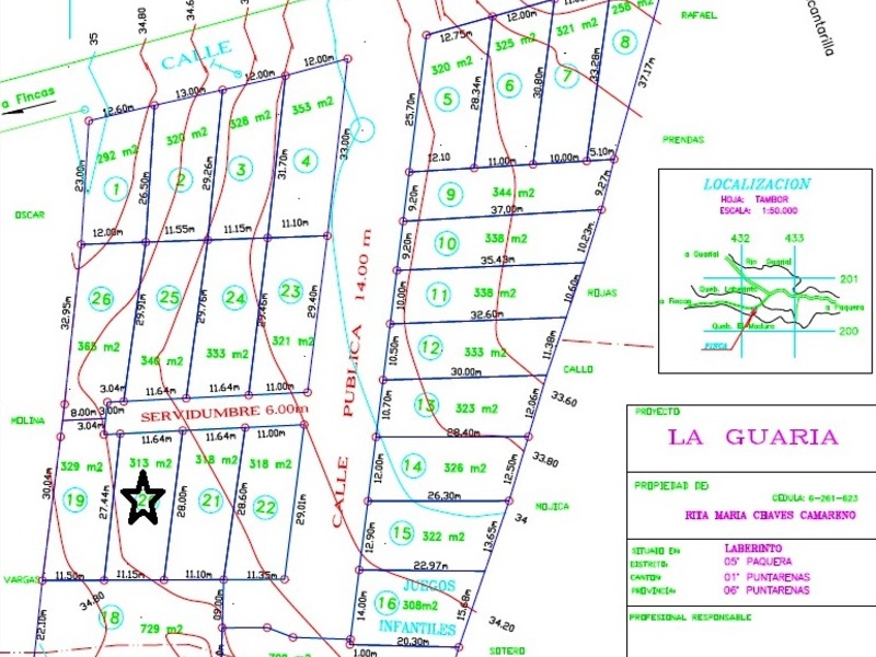 Residential Lot, Private Community, Bordering Creek, Near Beaches – Low Price ! This lot is located in a private housing development in a small, rural town. This particular lot is on a side street cul de sac, very private and very secure. There is an abundance of nature in Paquera but not much night life. There are many tours available and several secluded beaches, and National Parks and waterfalls nearby. The fishing is world class. Paquera sits between the Pacific Ocean and the calm, flat waters of the Gulf of Nicoya so there are water sports available every day. Paquera has several seafood restaurants, two large supermarkets, a local bank, a gas station, an excellent large medical clinic, a police station and several small hotels.The ferry landing is a few minutes away and the airport to Tambor is just 20 minutes to the west. Tours are available in Paquera to see the wildlife in Curu, fishing trips, snorkeling trips to Isla Tortuga, horseback riding and Bioluminescence by kayak or small boat. Owner financing is available to qualified buyers.