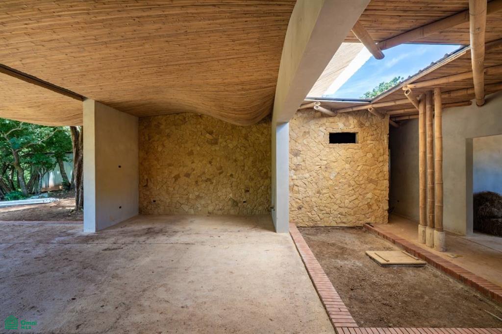Situated on a 5,500 m² lot with a maturing forest, the home is designed around an elegant interior courtyard, maximizing natural light, airflow, and privacy. Its spacious terraces extend the living areas outdoors, creating a seamless connection to the surrounding environment. The high ceilings are crafted with hand-selected bamboo, bringing warmth and organic beauty, while stone cladding regulates indoor temperature for enhanced thermal comfort. The clay tile floors not only add a timeless rustic charm but also contribute to energy efficiency by maintaining cool indoor temperatures.