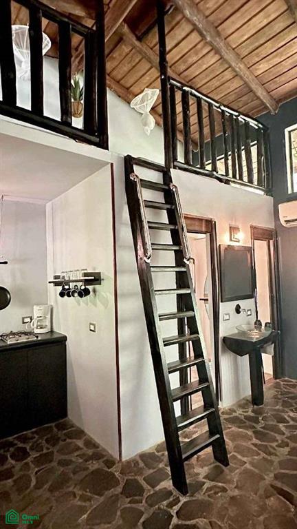 The private two-story home measures approximately 120 m² (1,290 square feet). It includes three air-conditioned bedrooms, two full bathrooms, and a terrace with stunning ocean views. The house is connected to the rental units by a hanging bridge but maintains private, independent access. It also includes parking for two vehicles and one ATV, as well as additional storage spaces.
