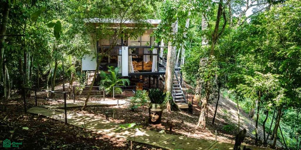 Currently operating as a successful vacation rental earning $350 USD per night, the home comfortably accommodates five guests across two spacious bedrooms and a flexible bonus space. Each bedroom features a queen-size bed, custom locally crafted built-ins, secure safes, and floor-to-ceiling windows that frame stunning views of the surrounding jungle and ocean. A cozy loft provides a peaceful nook for reading, meditation, or additional sleeping space, and a private lounge with a double sofa bed offers the versatility of a home office, yoga studio, or guest suite.