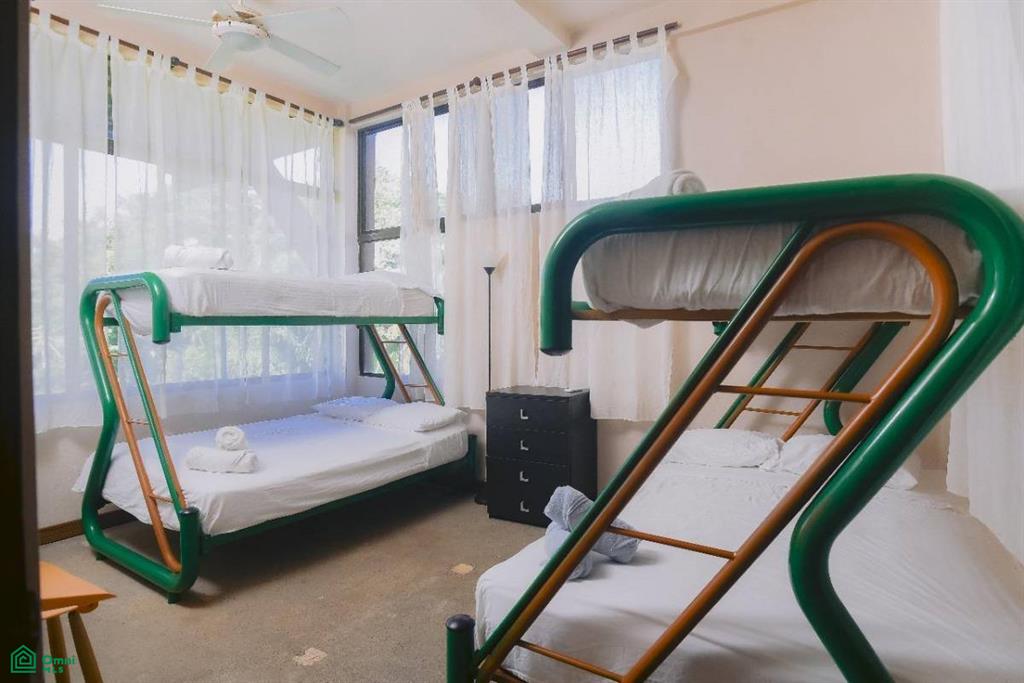 The home features a versatile 5-bedroom layout, including two master suites with king beds and private ocean-view balconies on the upper floor. The lower level offers three additional bedrooms, each uniquely configured with a bunk bed (double/single) plus an extra single bed, making it an ideal high-capacity rental. The expansive social area connects to a terrace with durable synthetic wood decking, a fully equipped chef’s kitchen with dual refrigerators, and a private pool featuring a children’s area and integrated jacuzzi.