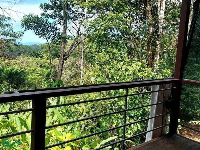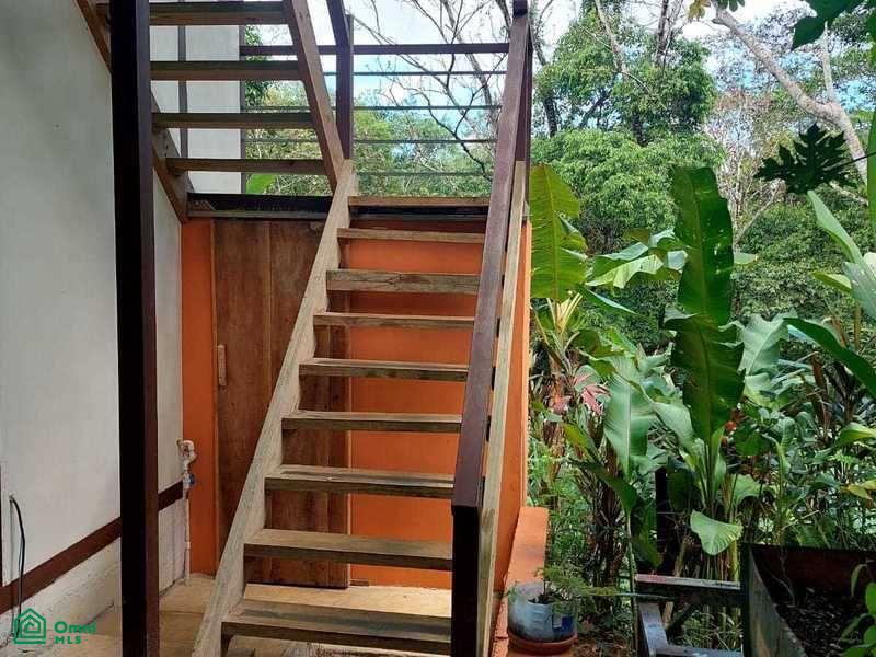 The property has 30 meters of frontage along the La Balsa road. The entrance to the property and owner's residence are located on the upslope from the public road and overlook the forest and have views of the waters of the gulf. The residence is a two-story structure with a large kitchen and guest bedroom with a bath