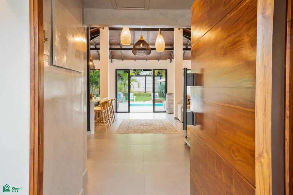 Nestled in the serene beach-town setting of Santa Marta, Nosara, Casa Oso Perezoso is a fully titled, exclusive single-family home that epitomizes modern tropical living. Completely remodeled in 2025, this one-story residence spans 956 m² of built space on a nearly 1,000 m² lot, thoughtfully designed with high ceilings and expansive sliding glass doors that flood the interior with natural light.