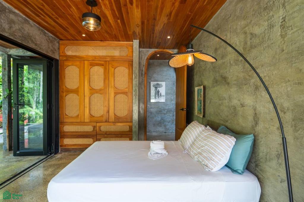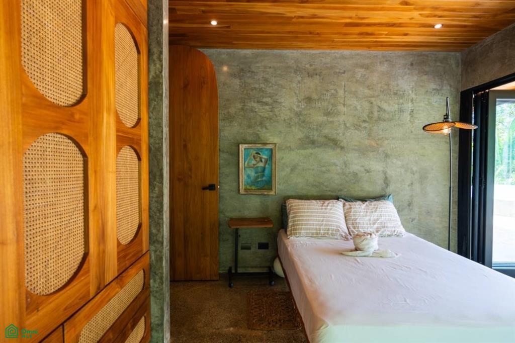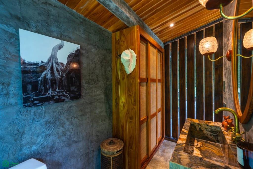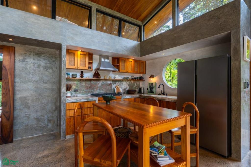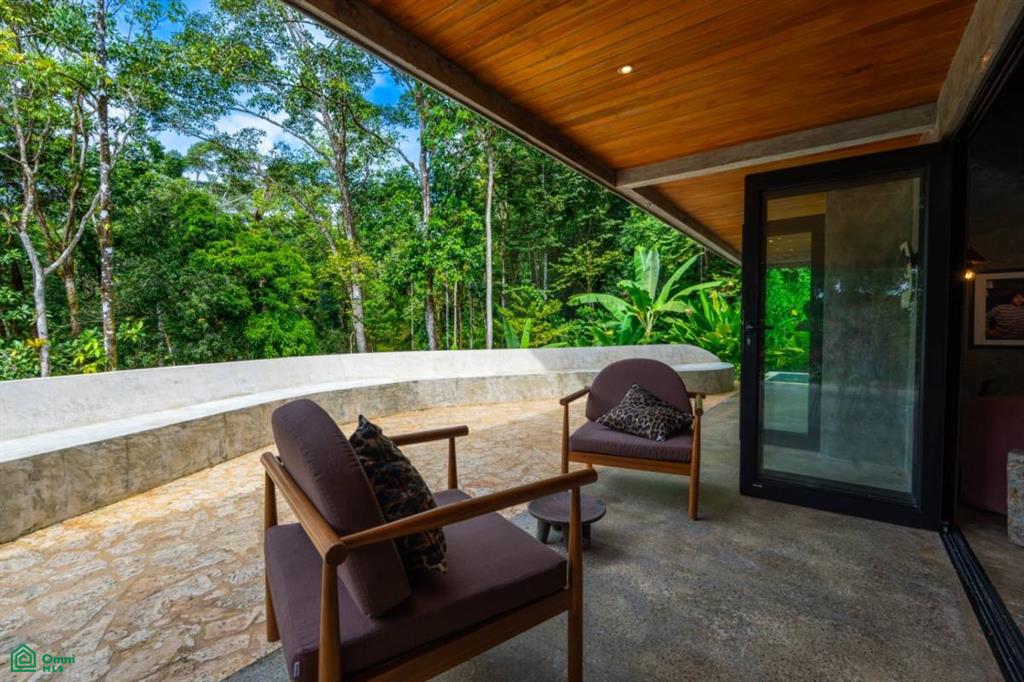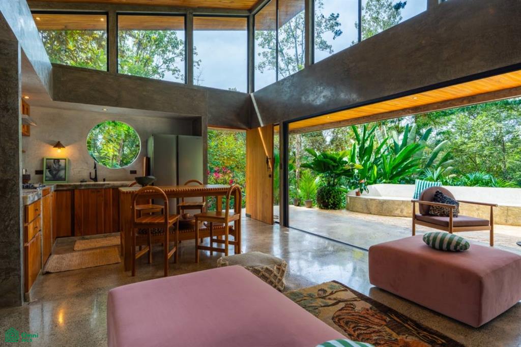 The bedrooms with en-suite bathrooms function as private retreats, offering cross-ventilation, natural materials, and direct green views. Bathrooms incorporate stone, wood, and generous windows, enhancing the feeling of immersion in nature without sacrificing comfort.