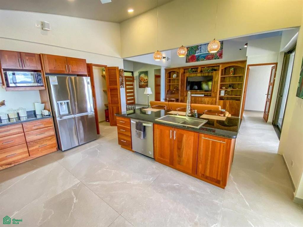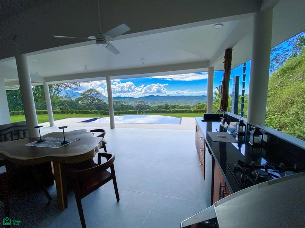 This brand-new home is a triumph of openness, convenience, beauty and design. The sturdy construction sits on a secure concrete pad with elegant marble cladding while the gorgeous Guanacaste lumber fit-outs bring warmth and refinement. The house is surrounded by parkland-like yards, tended hedges, and tropical trees & shrubs.