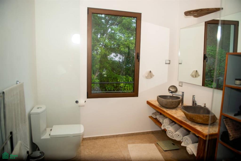 This 2-bedroom, 2-bathroom home was meticulously crafted by its current owner, a seasoned builder and developer from Spain. Constructed entirely in solid concrete on a robust foundation, it delivers long-lasting quality and peace of mind. The open-concept layout features a European-style kitchen, a spacious living area, and an expansive wraparound terrace that runs the full length of the home — designed to maximize natural light, airflow, and breathtaking ocean and jungle views.Each bedroom offers privacy with its own en-suite bathroom. Additional conveniences include a laundry room, ample storage with two secure bodegas (one approx. 15 m² and the other 5 m²), and generous parking for multiple vehicles, ATVs, or boats. Notably, the home comes with all the “previstas” to go full solar, providing an eco-friendly and energy-independent option for the future.