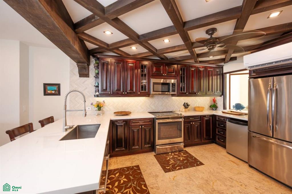 Gourmet Kitchen: Fully equipped with granite countertops, a breakfast bar, and a dining table for six, the kitchen is perfect for preparing meals with friends or family.