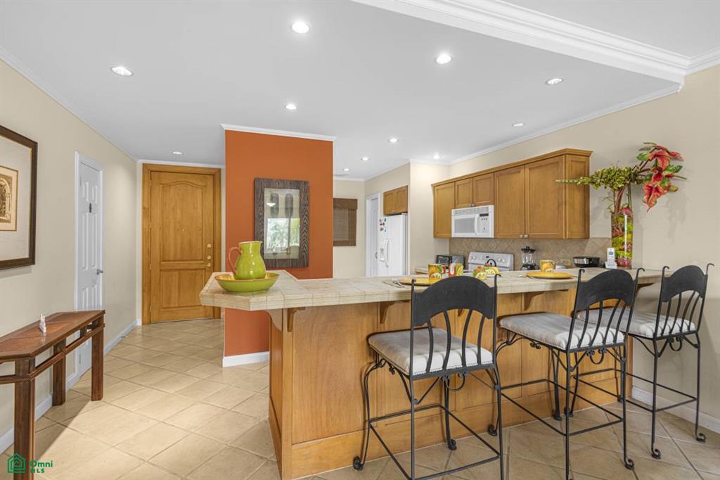 The apartment comes fully furnished and move-in ready. Its spacious layout allows for excellent separation between social and private areas. The kitchen flows into a bar area and connects seamlessly with the living and dining room, creating an ideal space for relaxing or entertaining guests.