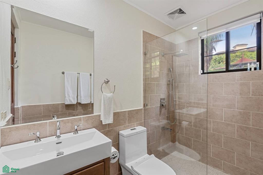 Diseño Sofisticado: Recientemente remodelada y repintada, esta residencia con aire acondicionado cuenta con mobiliario de primera calidad y elegantes detalles en madera en todo el espacio.