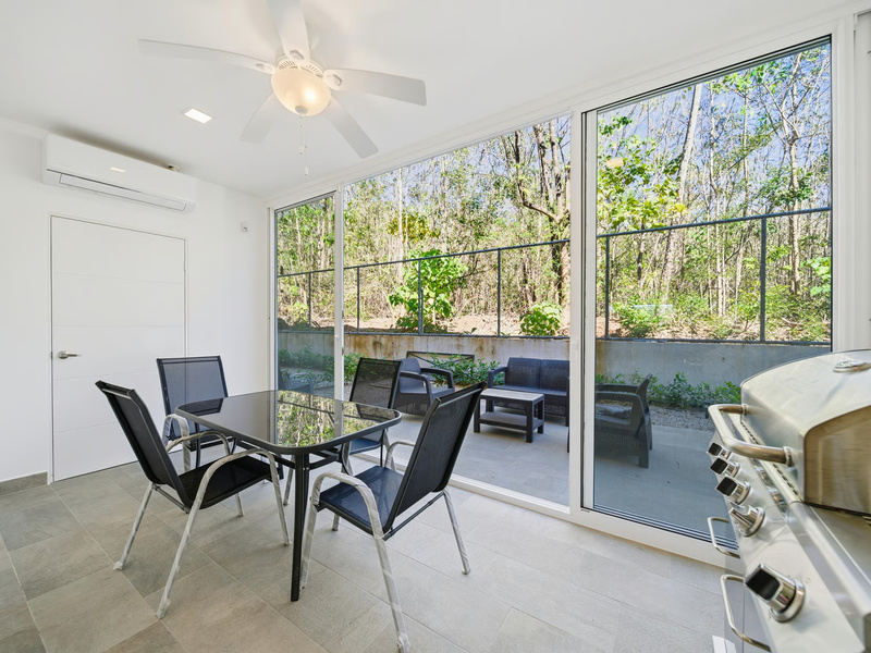 Residents enjoy resort-style amenities including a large pool, BBQ areas, fitness center, playground, and landscaped green spaces. Conveniently located near Playa Tamarindo and approximately one hour from Daniel Oduber Quirós International Airport.