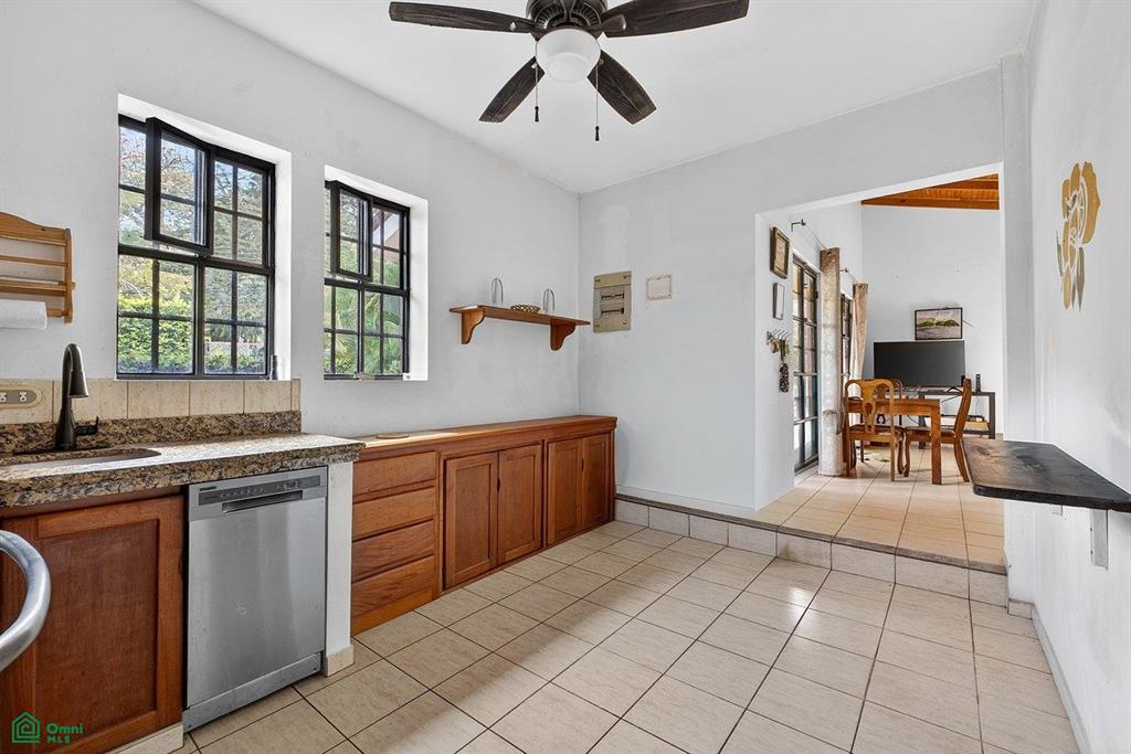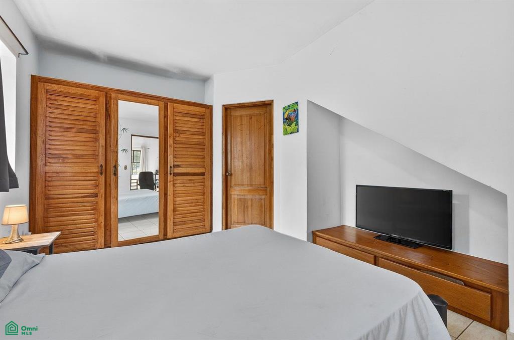 Step outside to enjoy your own private pool surrounded by lush green space and mature fruit trees, creating a peaceful tropical retreat. The property also includes gated parking with space for both a car and a golf cart.