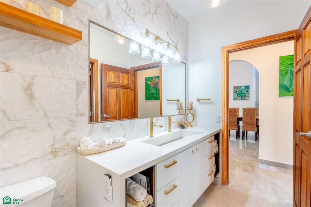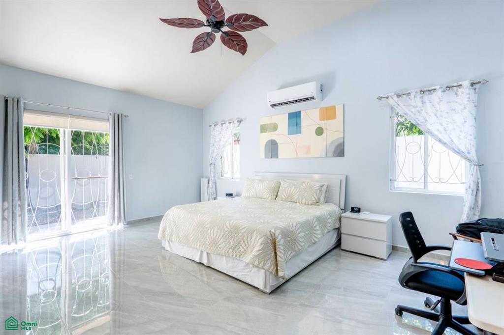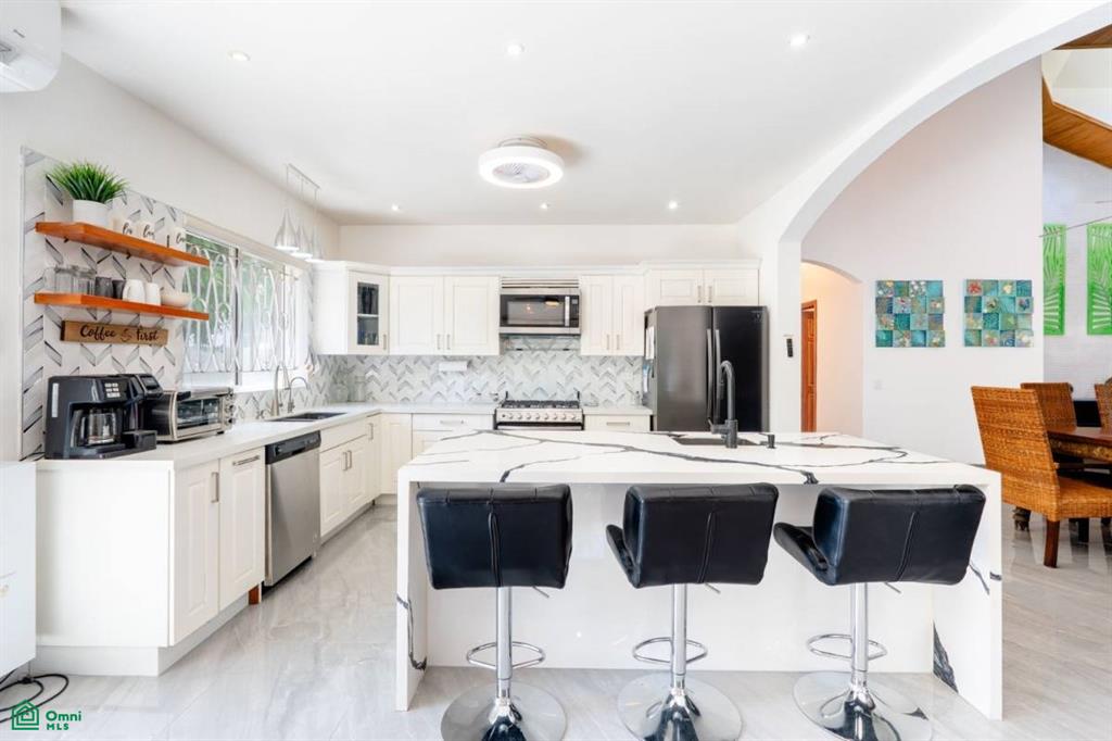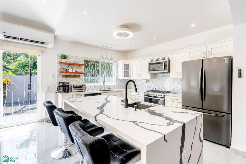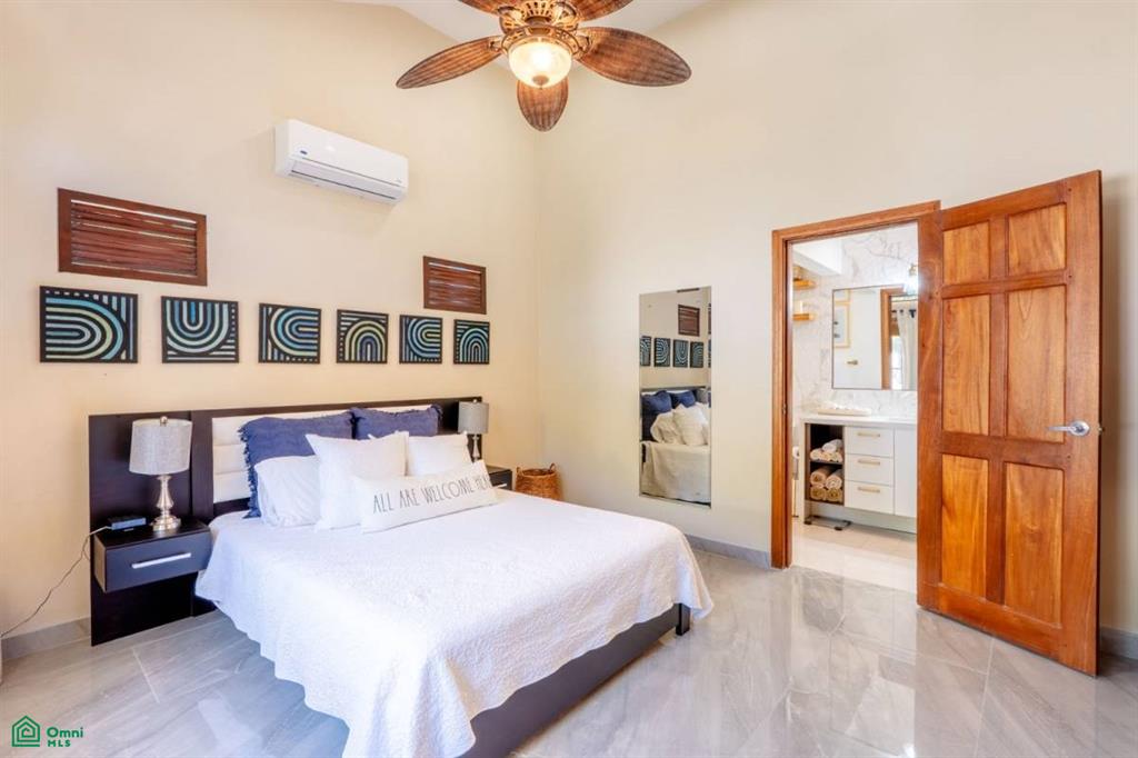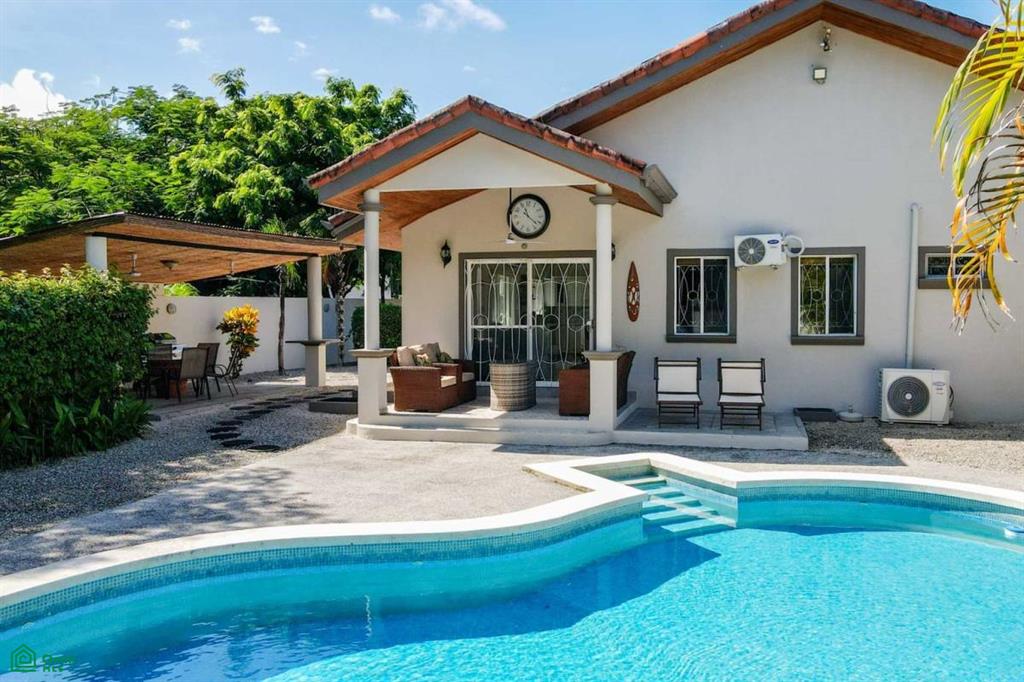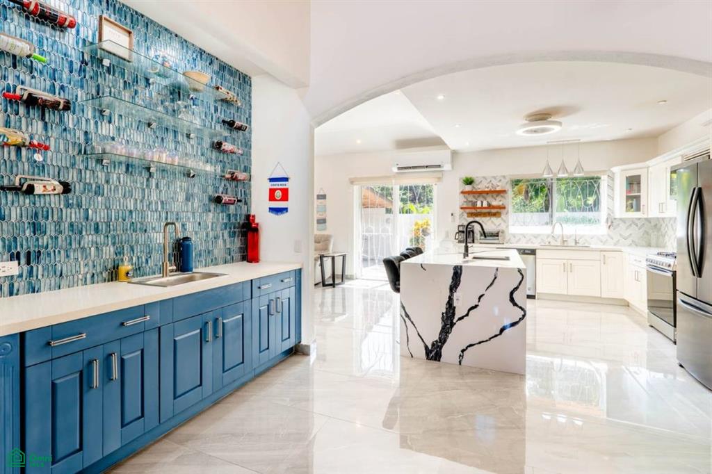 The entire development is conveniently located just a 25-minute drive from Liberia International Airport (LIR). This thoughtfully designed, single-level residence spans over 2,340 sq. ft. and features an open-concept living space built for entertaining. It includes three bedrooms, two full baths, and a convenient half-bath. The chef’s kitchen is a true highlight, boasting custom white cabinetry, quartz countertops, stainless steel appliances, a gas range, and a wet bar, with seamless access to the covered outdoor patio and BBQ area. The smart floor plan offers maximum privacy: the luxurious primary suite is a true sanctuary, featuring an en-suite bath, walk-in closet, office space, and direct walkout to the pool. Two additional generous bedrooms and a full bath are located on the opposite end of the house.