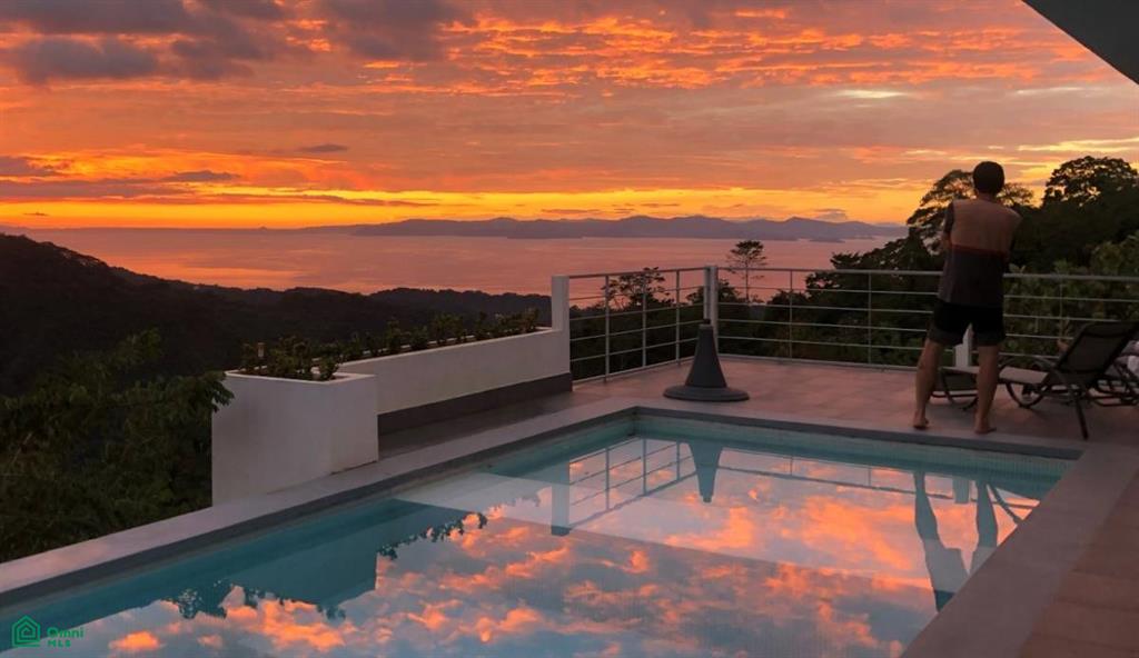 This well-built contemporary home with European-inspired design is perched high above Jacó, where refined architecture meets raw Costa Rican nature. Clean lines, quality construction, expansive glass, and wide terraces frame sweeping ocean views while the jungle forms a dramatic, living backdrop.