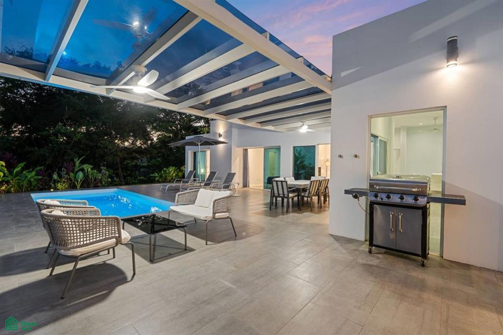 to relaxed afternoons or casual gatherings in the tropical climate. Practical features, including ample storage and a dedicated laundry room and closet, support comfortable day-to-day living.