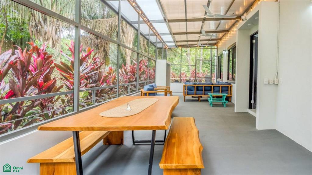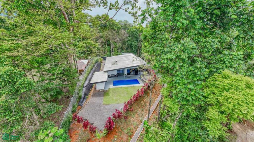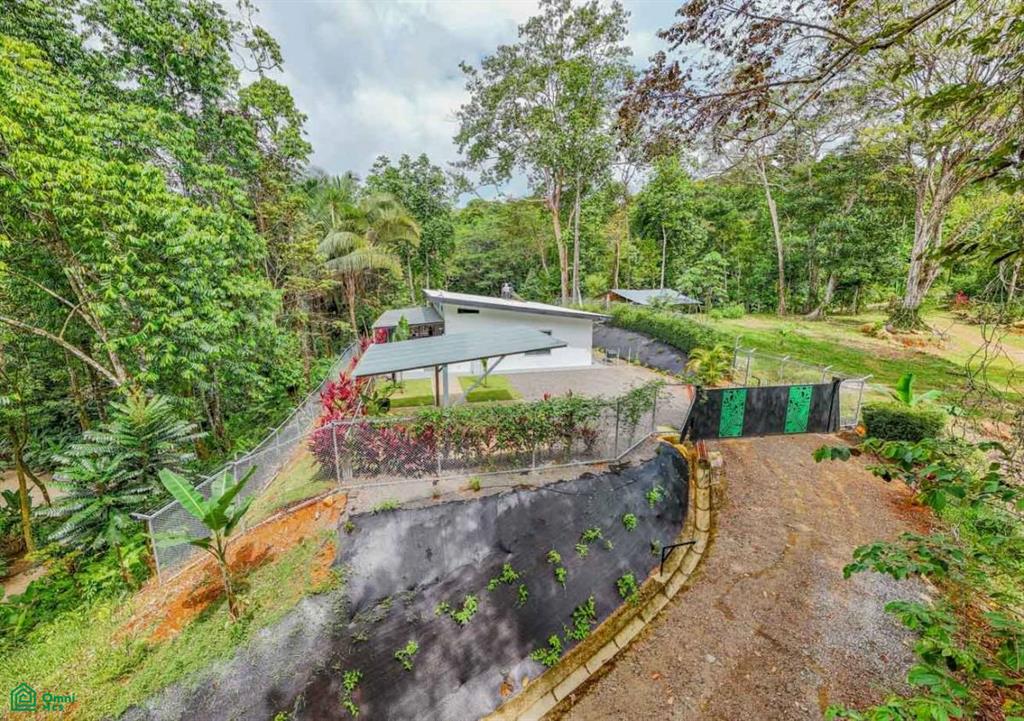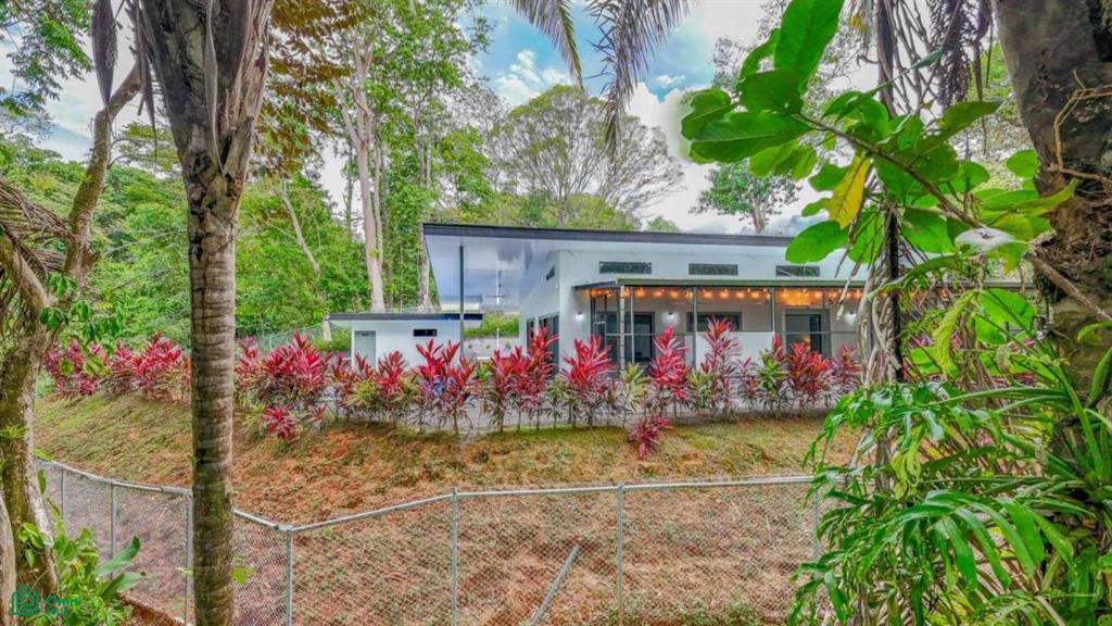 This wonderful home, a modern masterpiece of function and lightness, is designed to take full advantage of the towering jungles that surround the property. Located on Cinco Ventanas road’s quiet, parallel off-shoot, this house is fully separated from the already sparse local traffic and enjoys total peace & serenity. Towering rainforests surround this 2.18 acre elevated property from every direction – a wall of green that creates a magical vibe you will never grow tired of. A crystal-clear mountain river, draped in jungles, winds her way around the lot. And if you envision a bigger project, the neighboring property is also for sale. This additional property is 1.69 acres in size and can accommodate structures such as homes or cabins or be used as a tropical fruit orchard, organic farm, or separate entertainment / exercise / relaxation area.