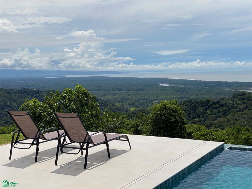 This contemporary open-concept residence features high ceilings and expansive glass walls with sliding doors that flood the home with natural light while framing 180-degree views of the Pacific Ocean, Osa Peninsula, Caño Island, and the Térraba River.