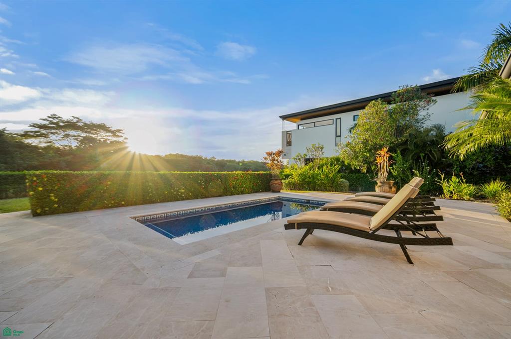 The lush tropical garden is impeccably maintained, with room to extend the pool or add a garage.
