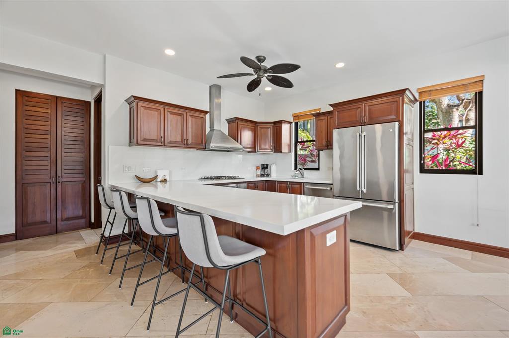 Beautifully furnished, the open-concept design features a central island and flows to the pool and terrace.