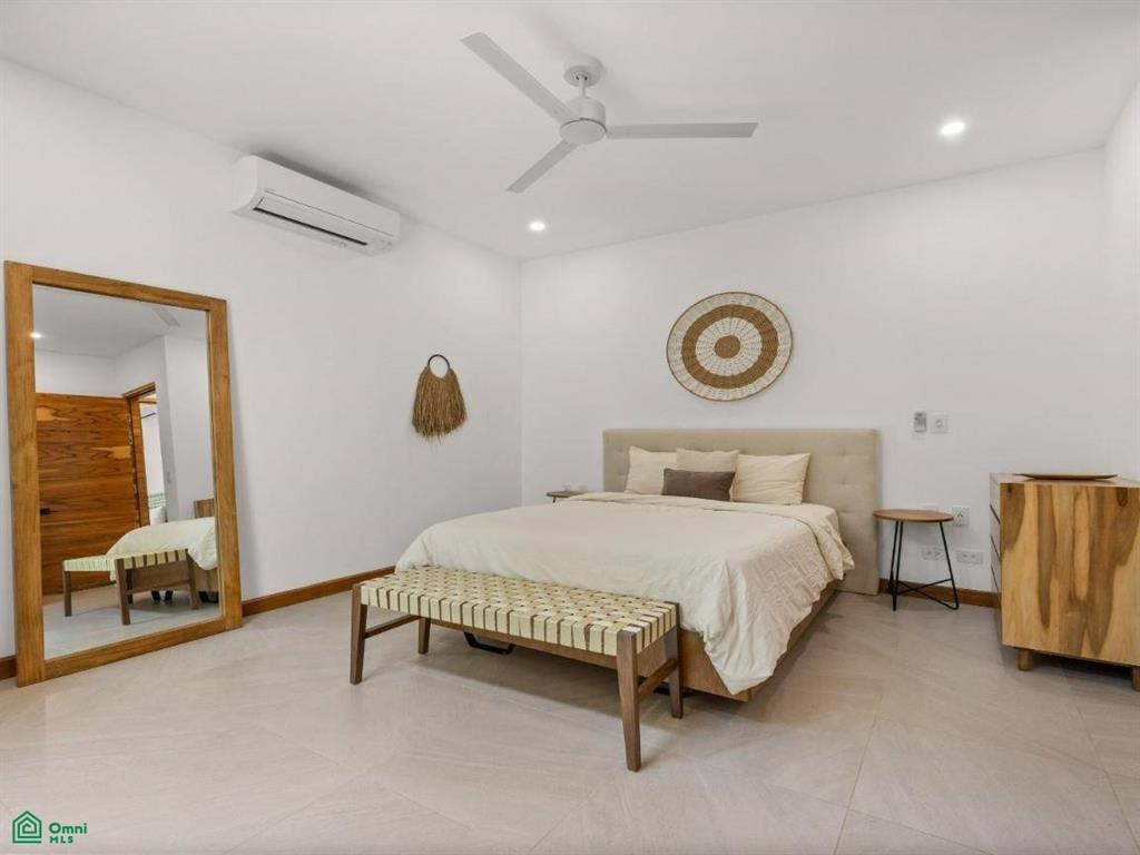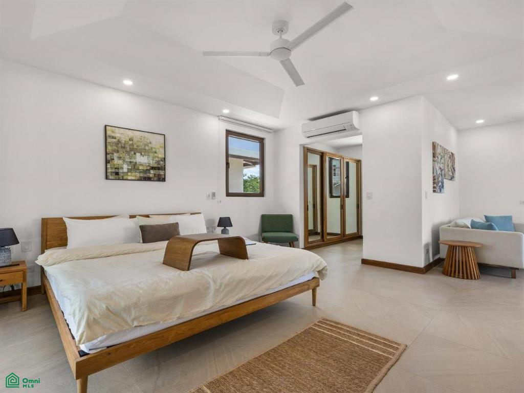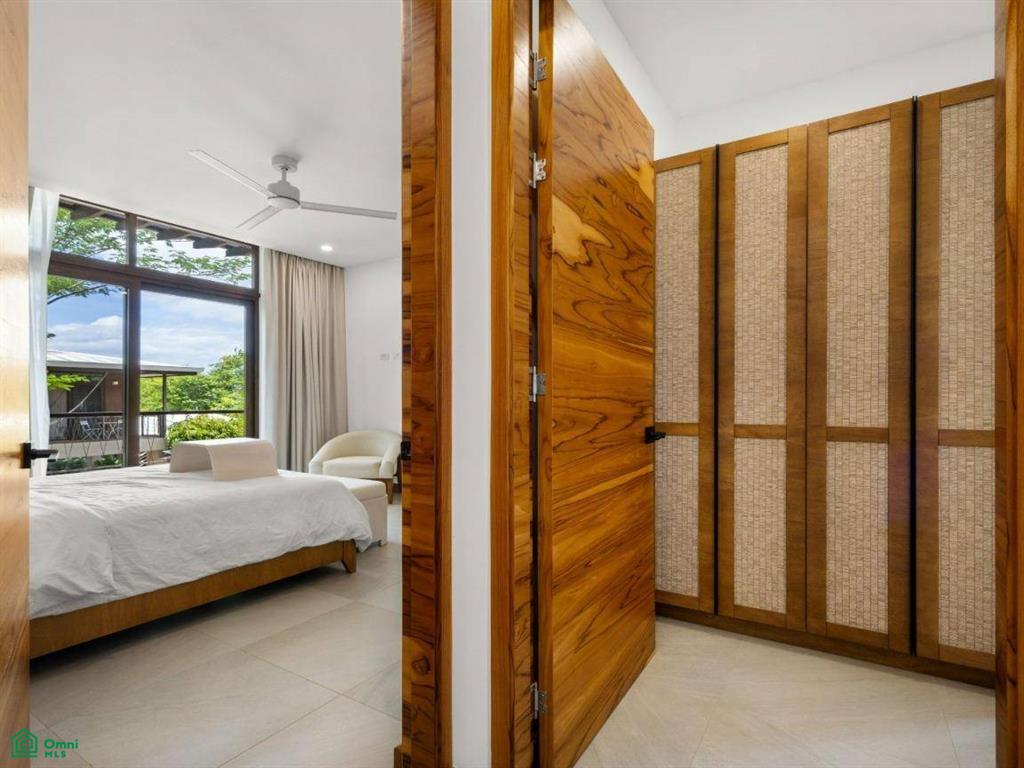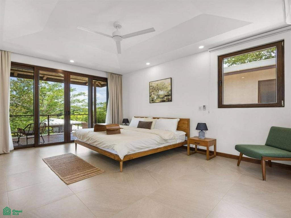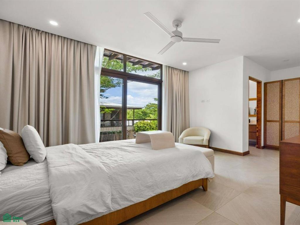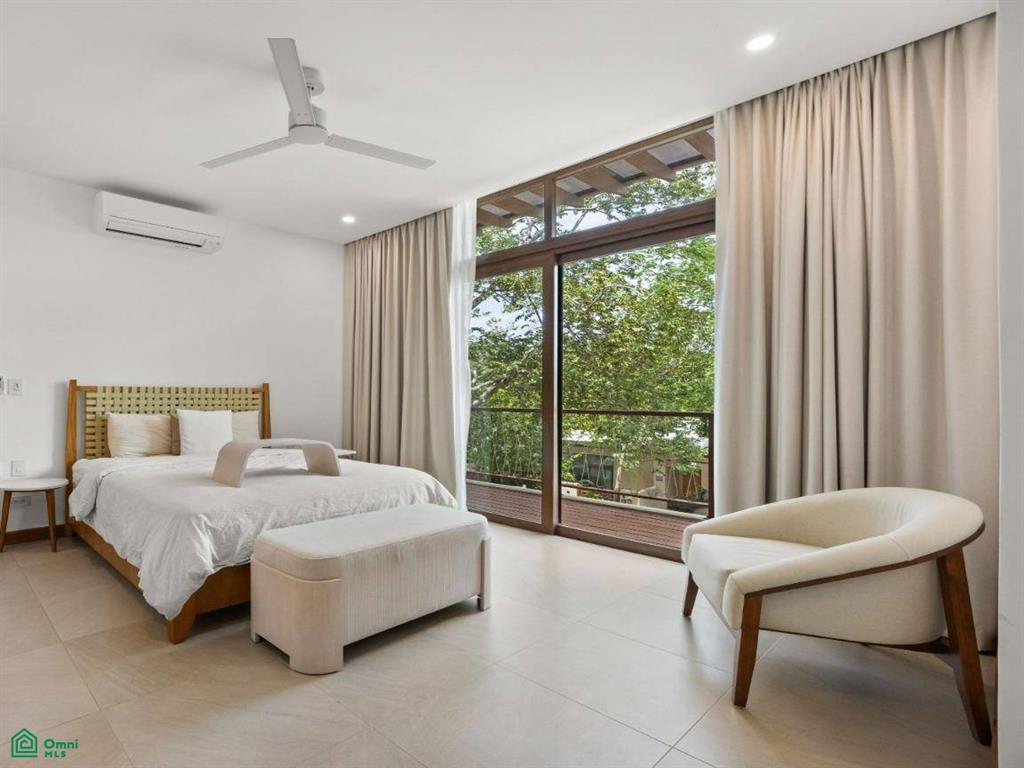 Each of the three bedrooms are designed with luxury and comfort in mind, featuring porcelain floors and high-quality materials. The master bedroom offers a private balcony with a partial view of Langosta Beach, providing a peaceful spot to relax. The second bedroom also includes its own balcony, offering another space to enjoy the fresh air. The third bedroom features a compact interior garden that can be used as a serene yoga deck or a tranquil lounging area, bringing nature indoors.