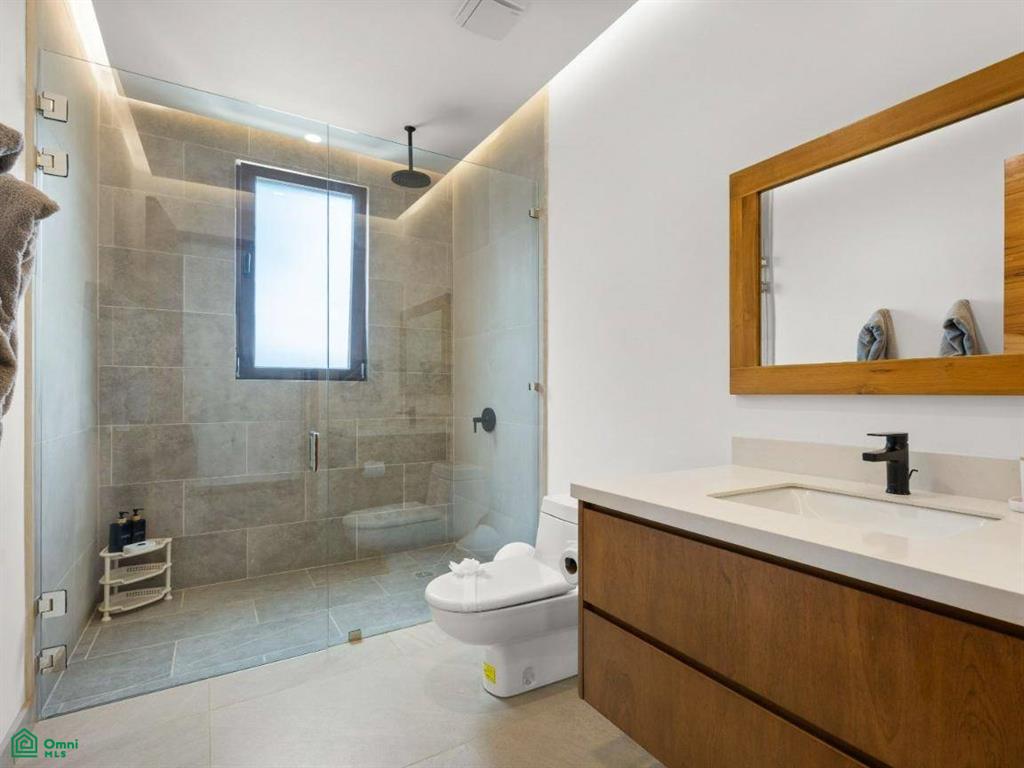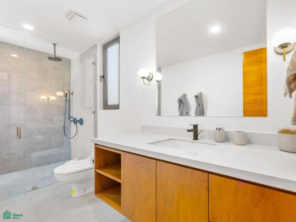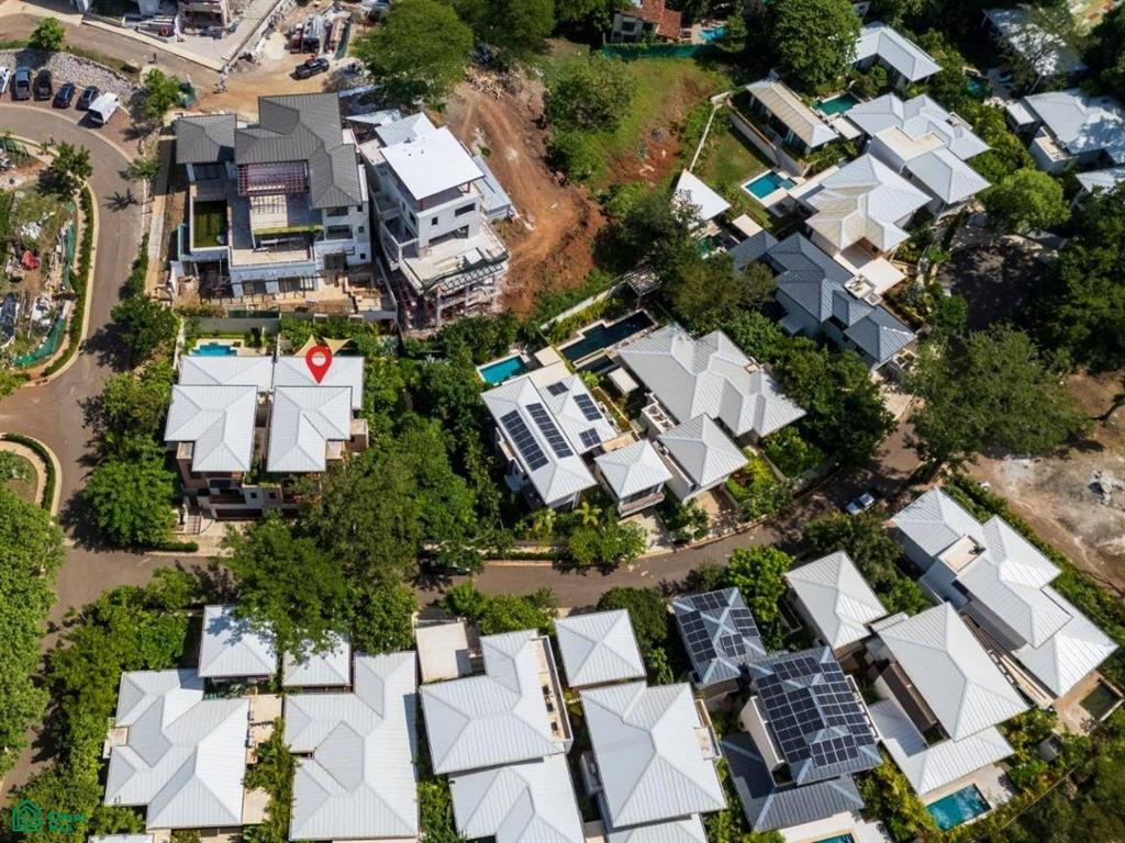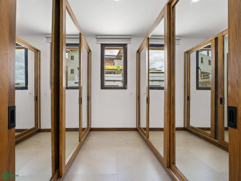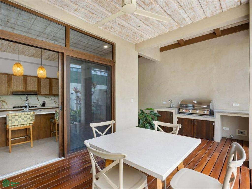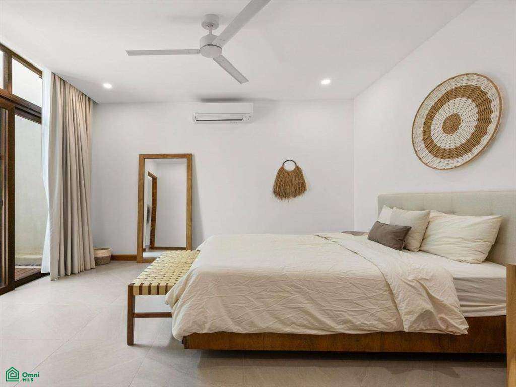 Each of the three bedrooms are designed with luxury and comfort in mind, featuring porcelain floors and high-quality materials. The master bedroom offers a private balcony with a partial view of Langosta Beach, providing a peaceful spot to relax. The second bedroom also includes its own balcony, offering another space to enjoy the fresh air. The third bedroom features a compact interior garden that can be used as a serene yoga deck or a tranquil lounging area, bringing nature indoors.