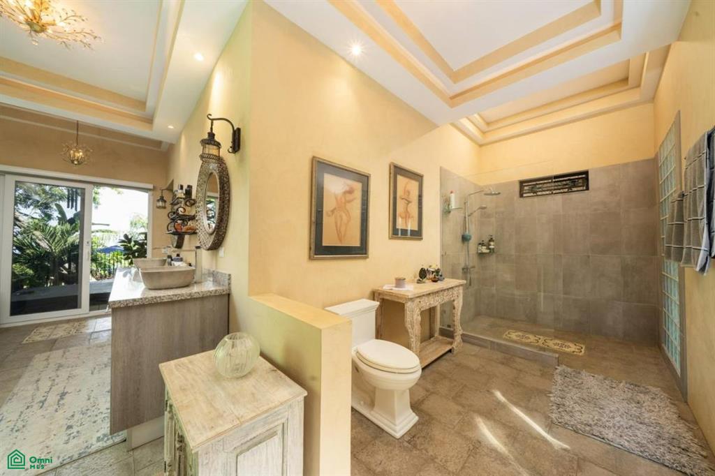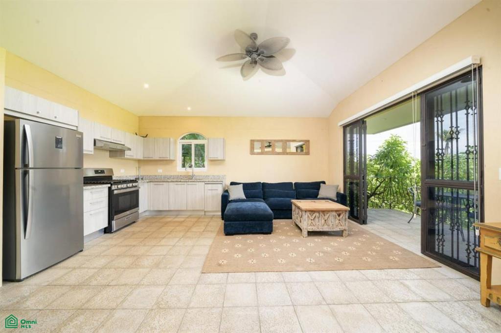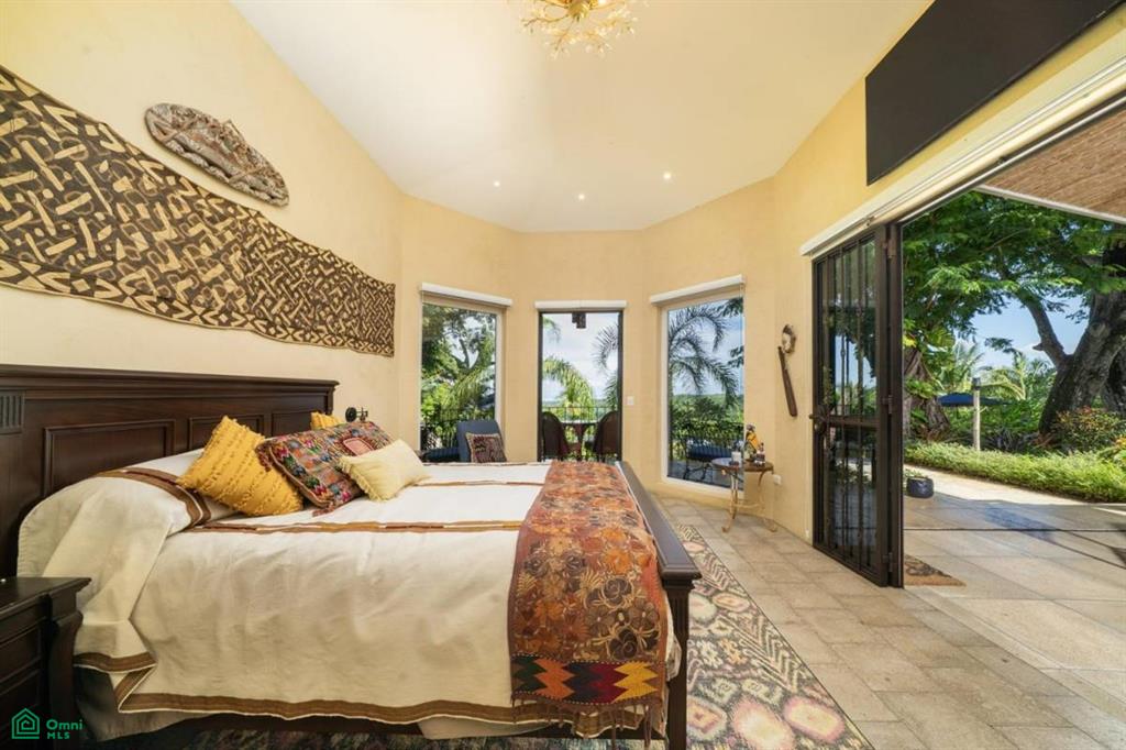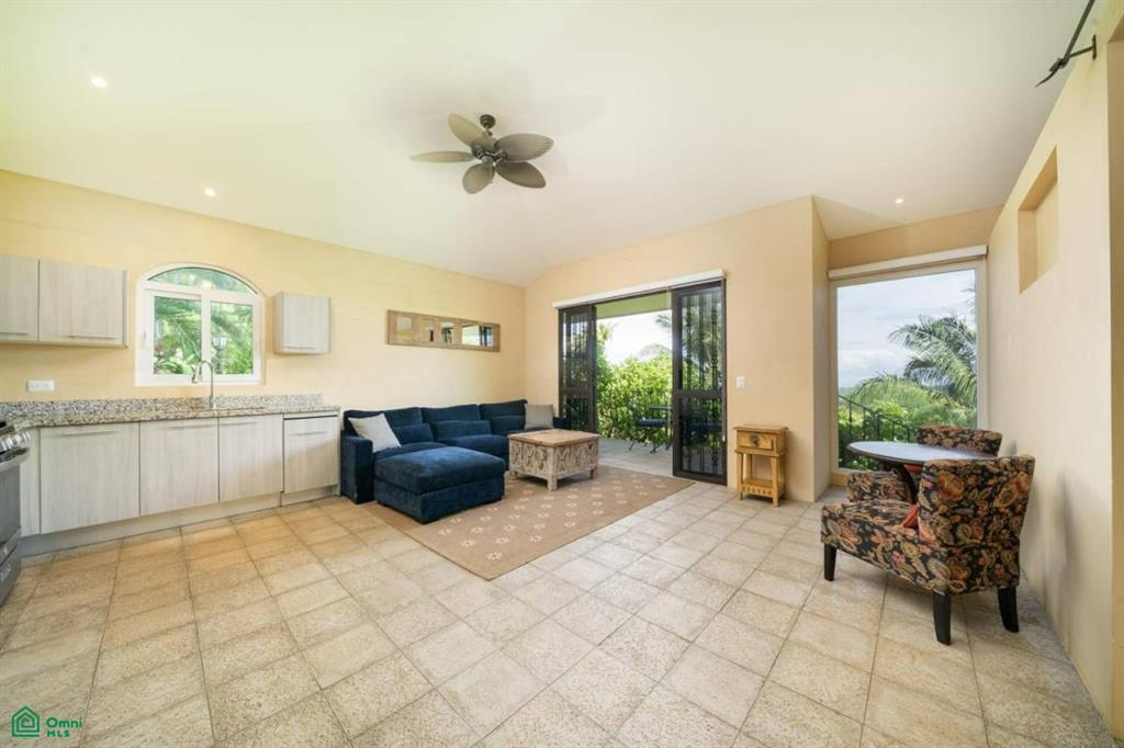 The main residence features two spacious bedrooms, each with a private ensuite, and three full bathrooms in total. Floor-to-ceiling windows, wide terraces, and elevated balconies ensure that nearly every room connects with nature. The gourmet kitchen—complete with sweeping ocean views—flows into an open-concept living and dining space, perfect for both relaxed afternoons and lively evenings. Additional highlights include a wine cellar and vaulted ceilings that enhance the home’s sense of openness.