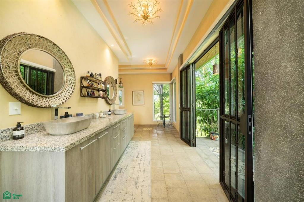 From the moment you pass through the elegant iron gate, the atmosphere is one of calm sophistication. A peaceful courtyard fountain leads into the main house, where a seamless indoor-outdoor layout draws your eye to the lush canopy and the distant Pacific.