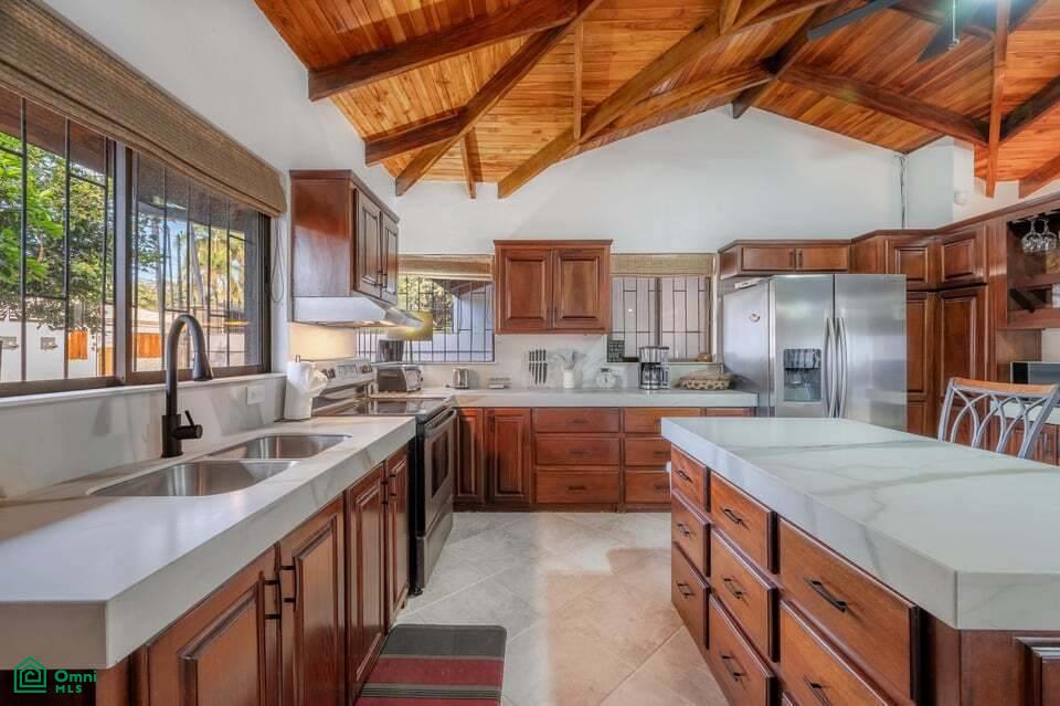 Step into Casa Coco, a beautifully restored Costa Rican gem just a short stroll to the beach in Surfside Estates, Potrero! This 3-bedroom, 2-bathroom home blends traditional charm with modern comfort, featuring stunning handcrafted Guanacaste wood ceilings and cabinets that bring warmth and character to every space.